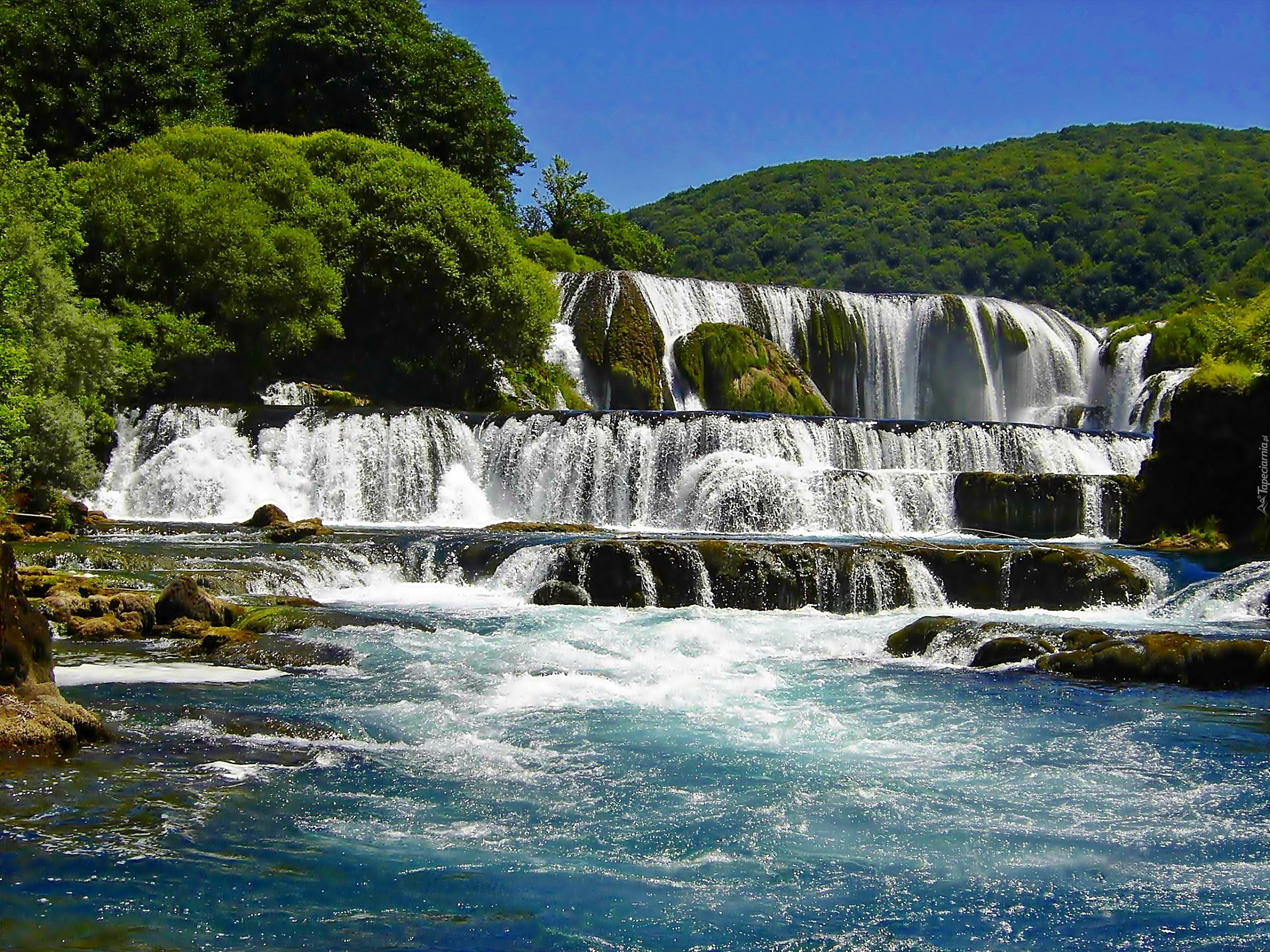 Edytor tapety: Wodospad, Niebo, Las