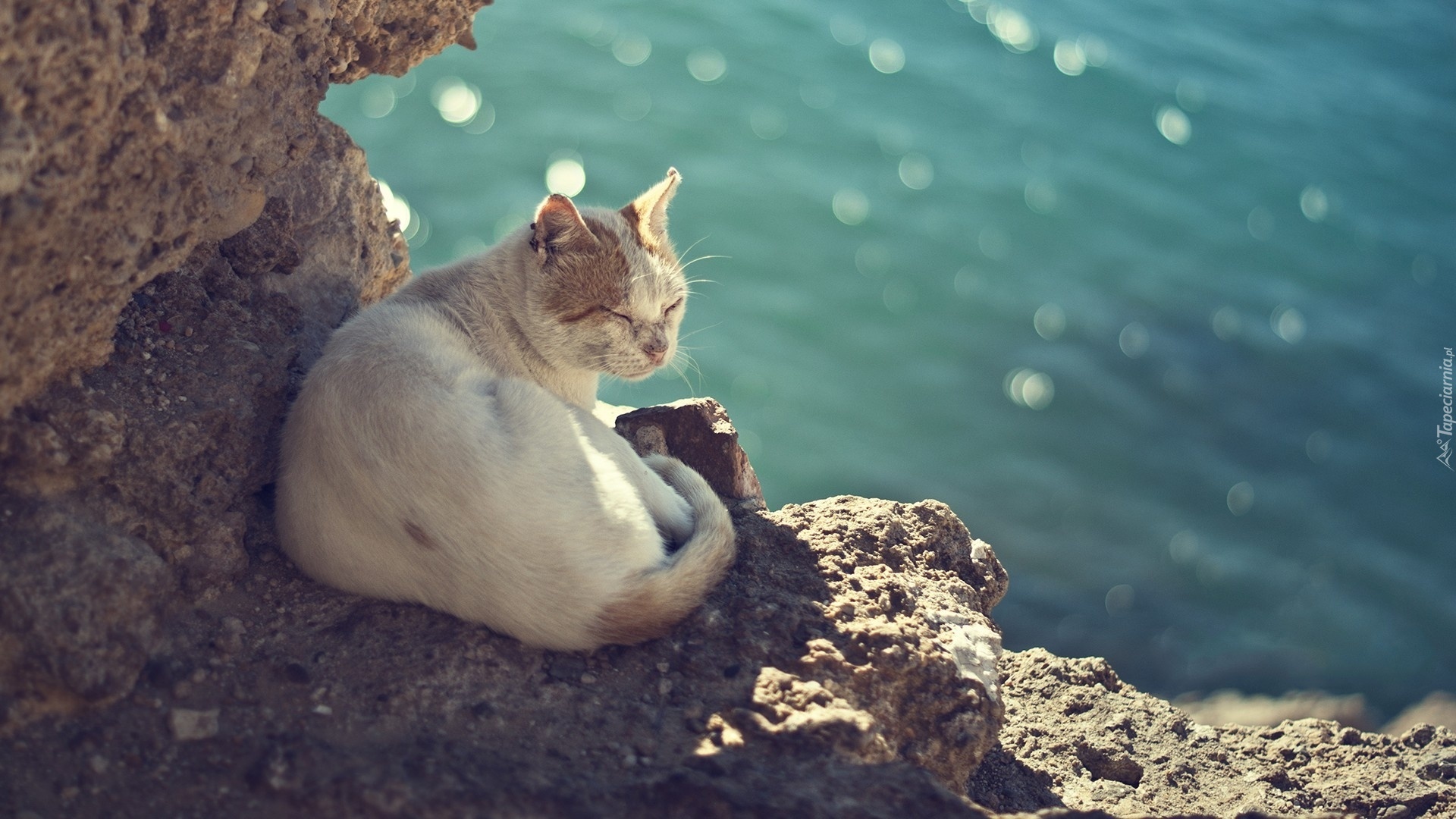 Edytor tapety: Śpiący, Kot, Skała, Lato