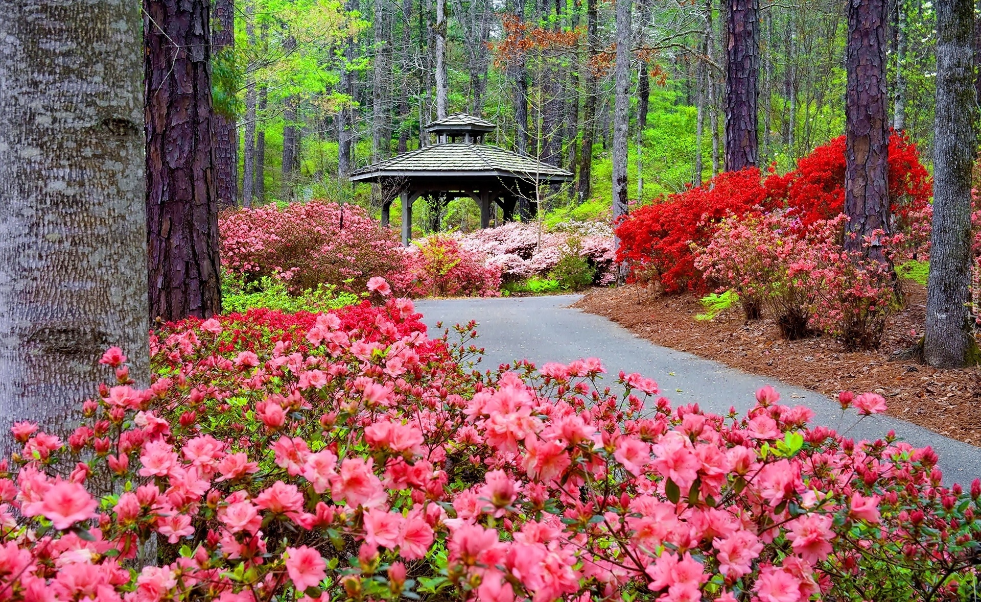 Edytor tapety: Park, Aleja, Kwiaty
