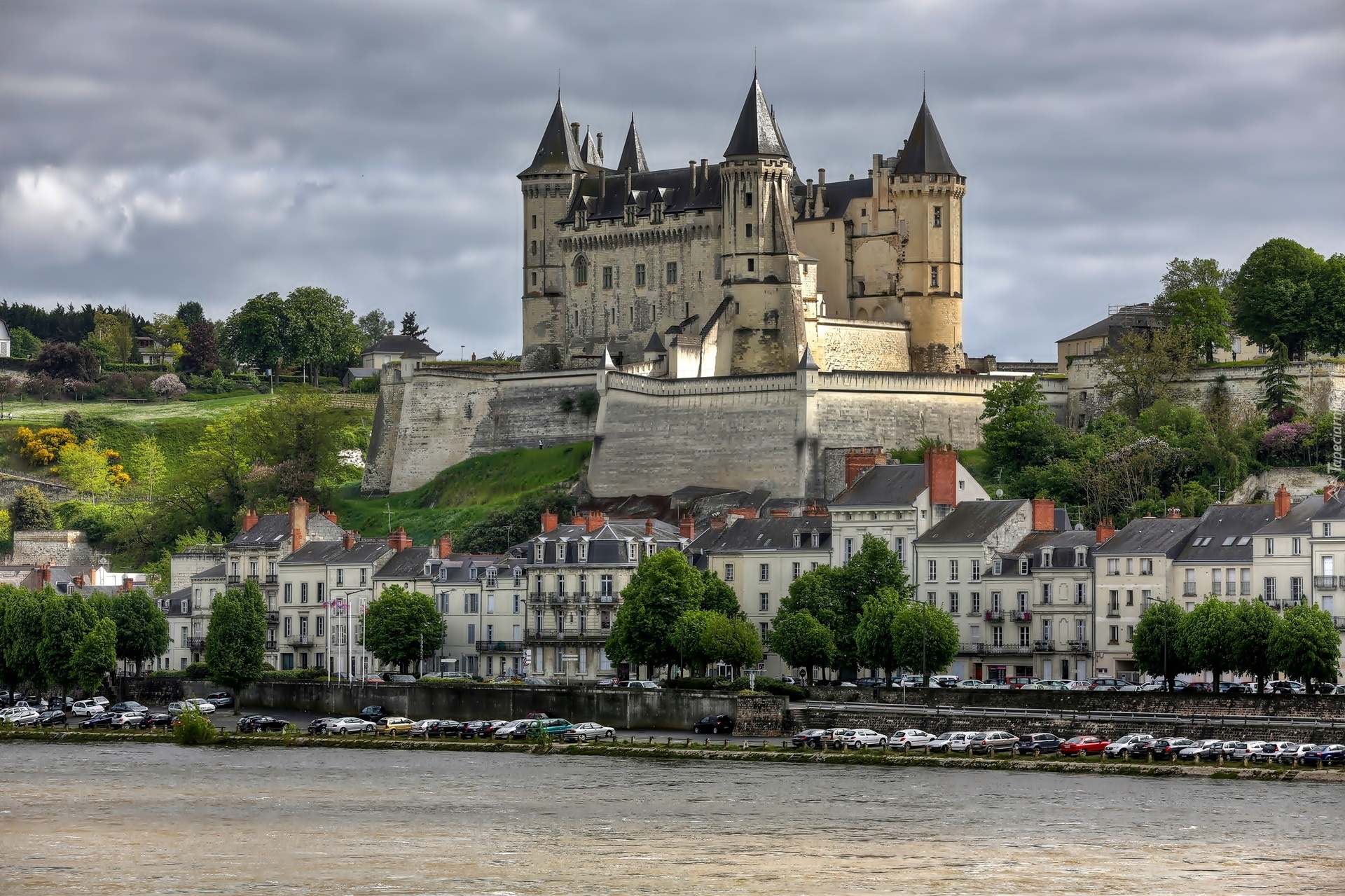 Edytor tapety: Zamek w Saumur, Chateau de Saumur, Miejscowość Samur, Francja, Rzeka Loara