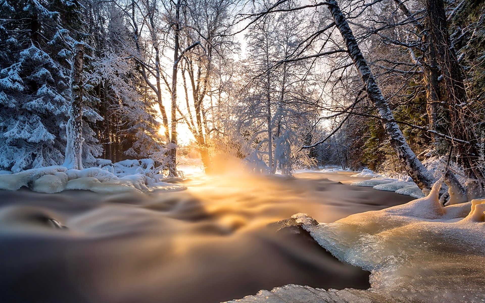 Edytor tapety: Zima, Las, Przebijające, Światło