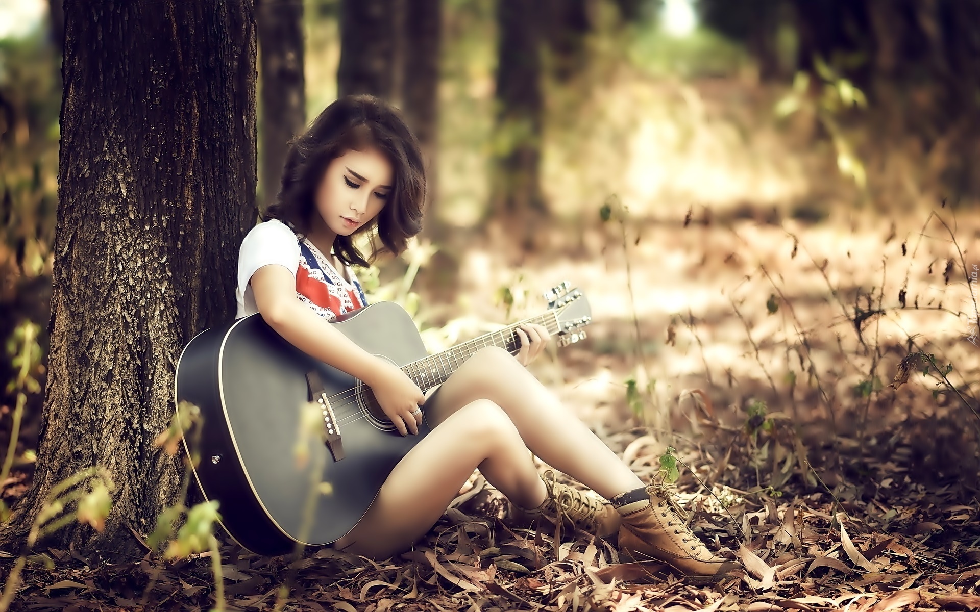 Edytor tapety: Dziewczyna, Las, Gitara