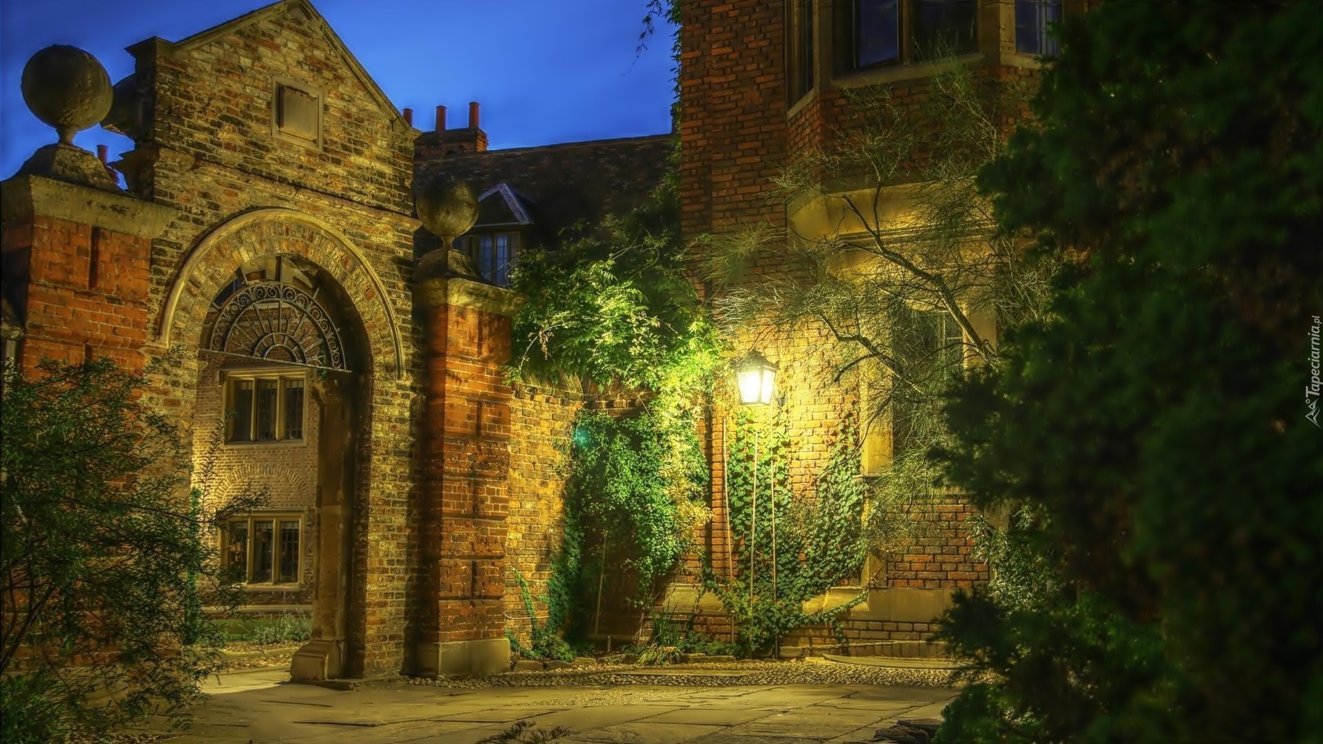 Edytor tapety: Dom, Patio, Drzewa, Wieczór
