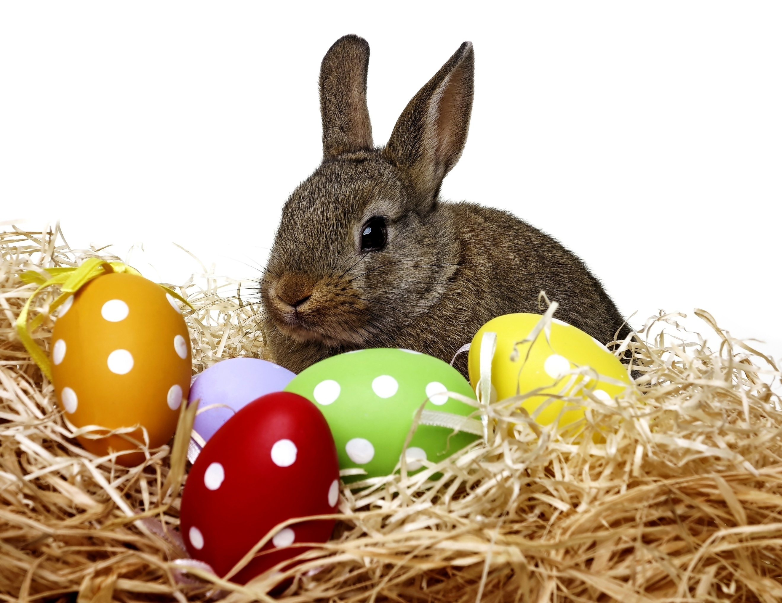 Edytor tapety: Zajączek, Jajka, Sianko, Wielkanoc
