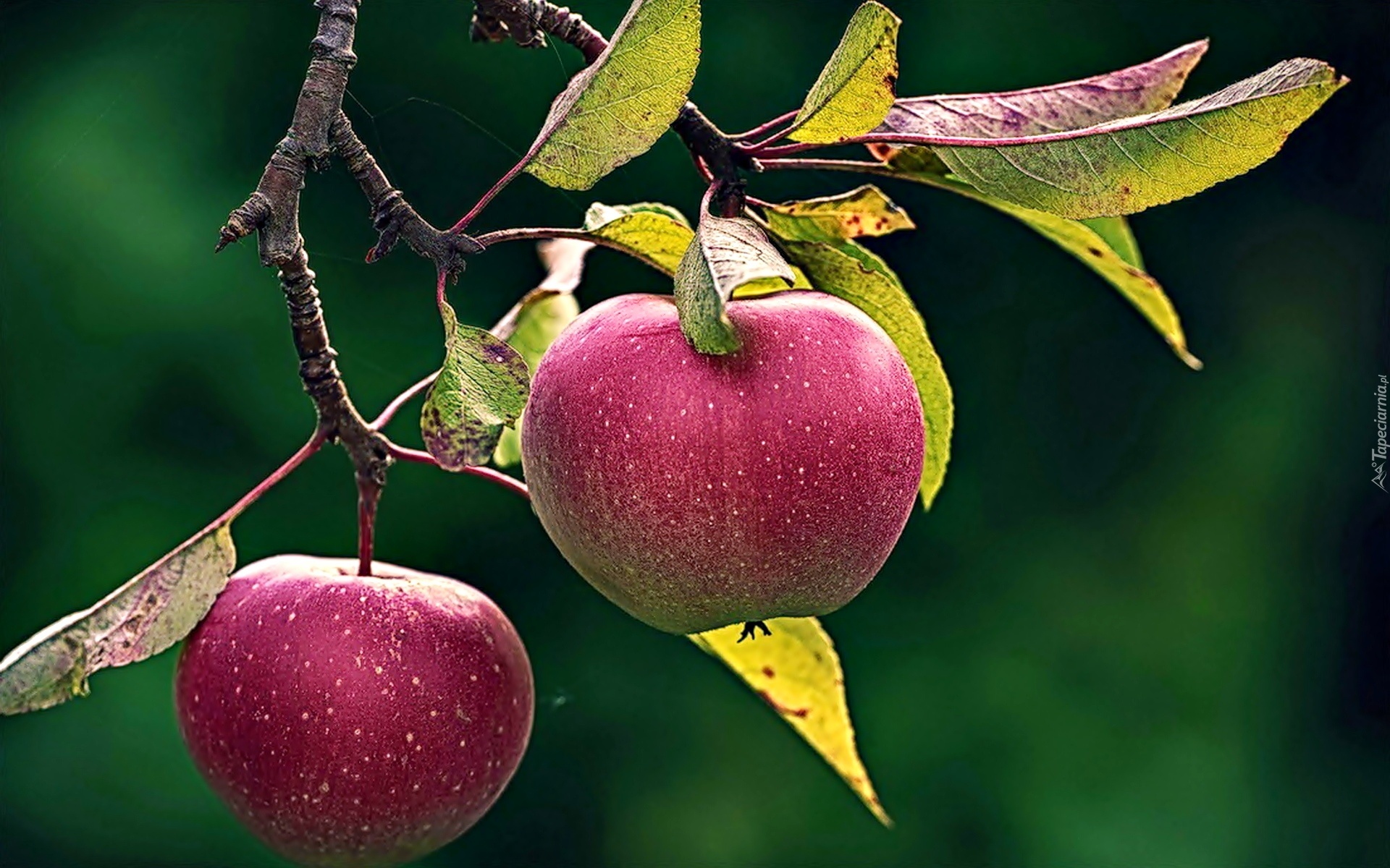 Edytor tapety: Dwa, Jabłka, Gałązka, Listki