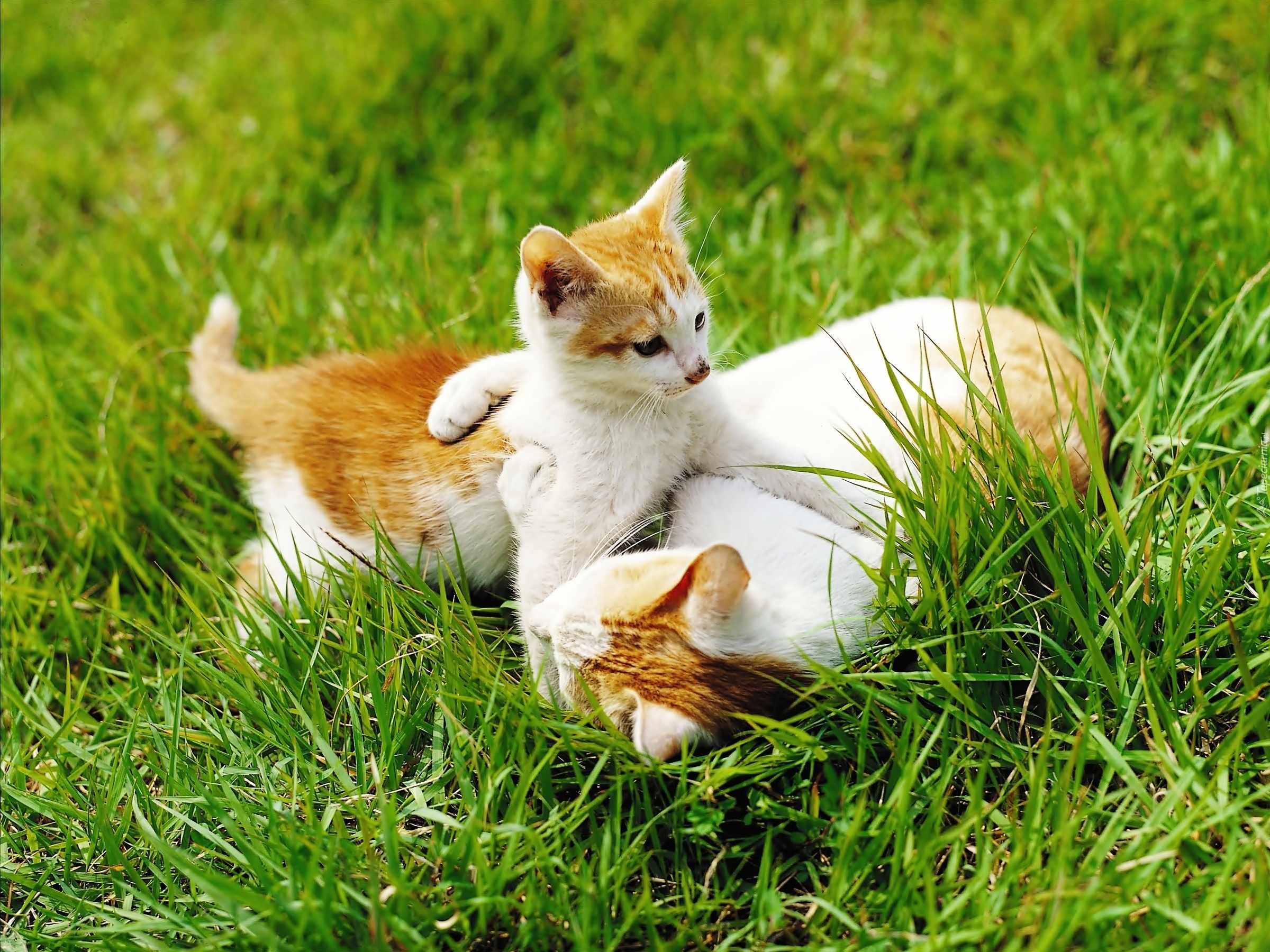 Edytor tapety: Dwa, Kotki, Zabawa, Trawa