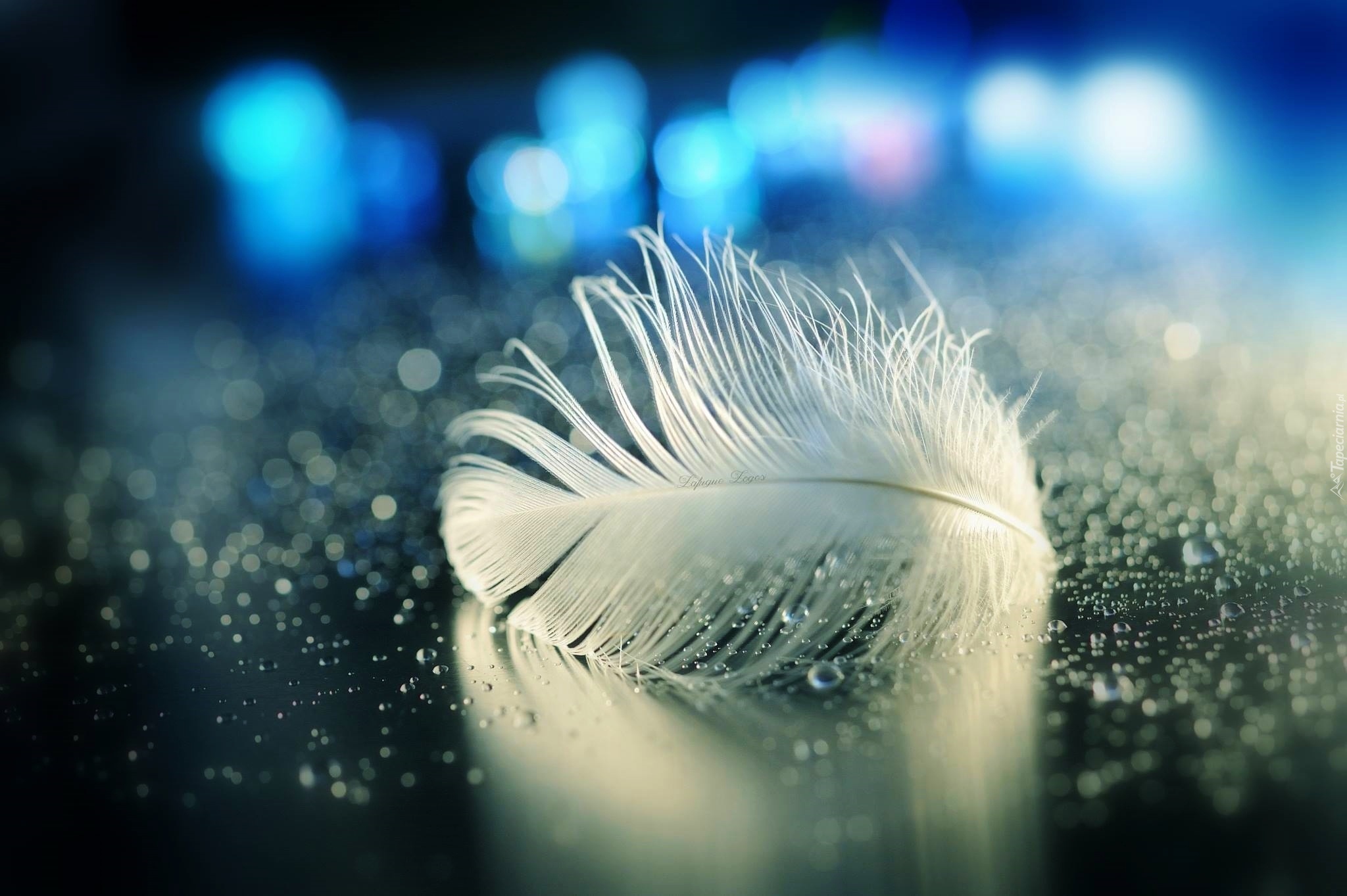 Edytor tapety: Piórko, Krople, Wody