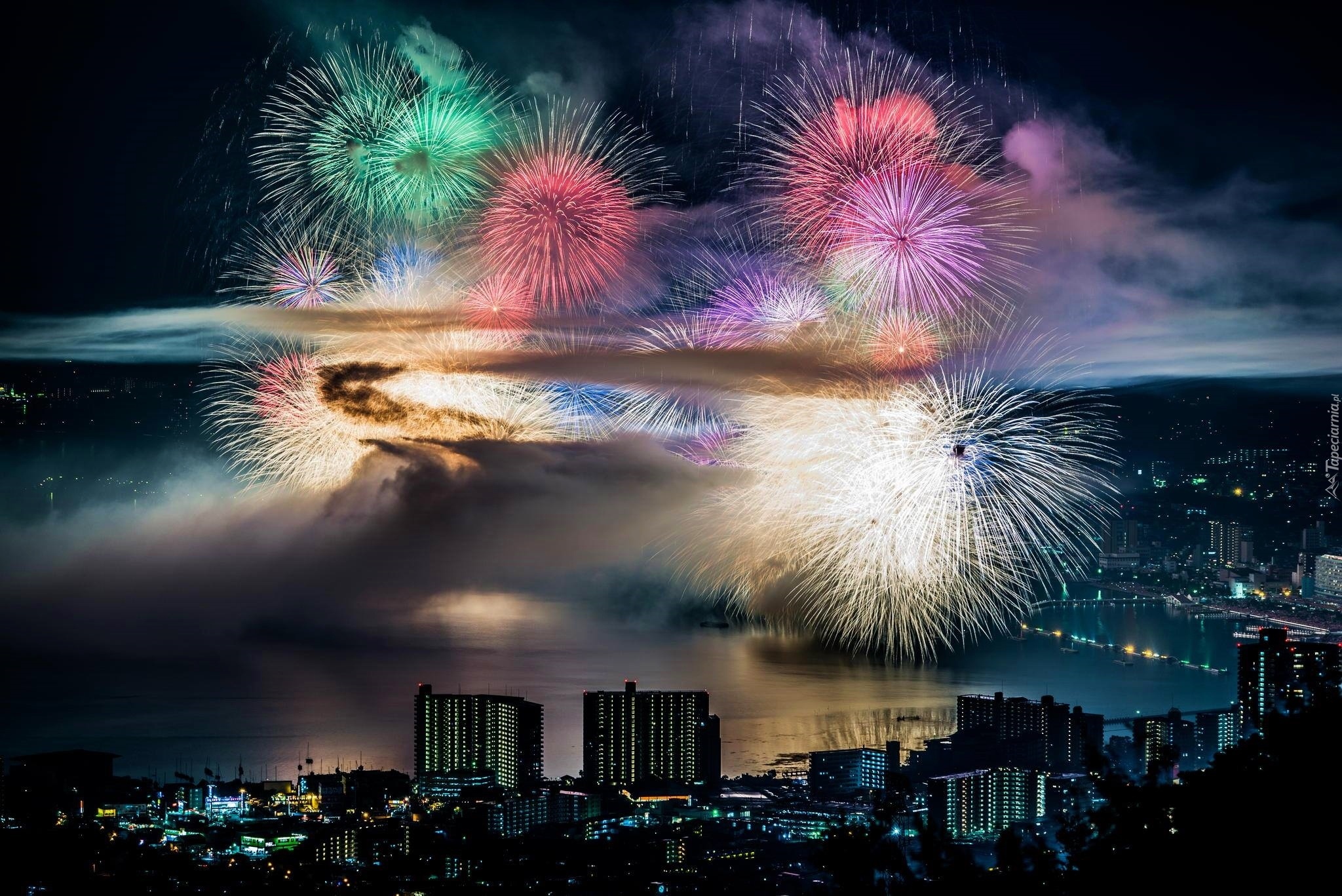 Edytor tapety: Fajerwerki, Miasto, Noc