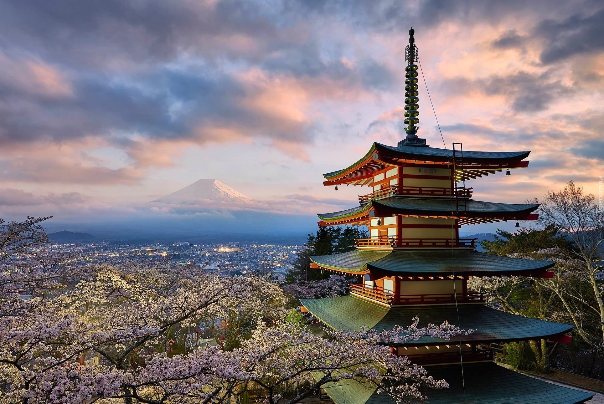 Edytor tapety: Niebo, Kwitnące, Drzewa, Świątynia