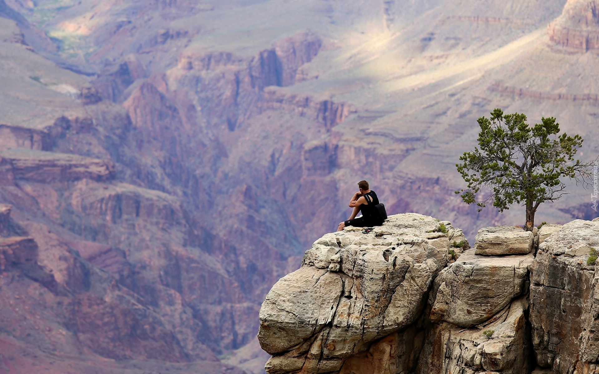 Edytor tapety: Góry, Skała, Drzewo, Turysta