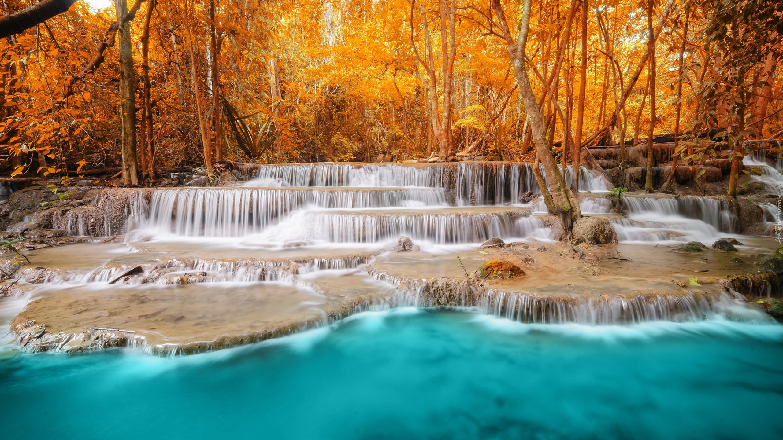 Edytor tapety: Las, Wodospad, Skały