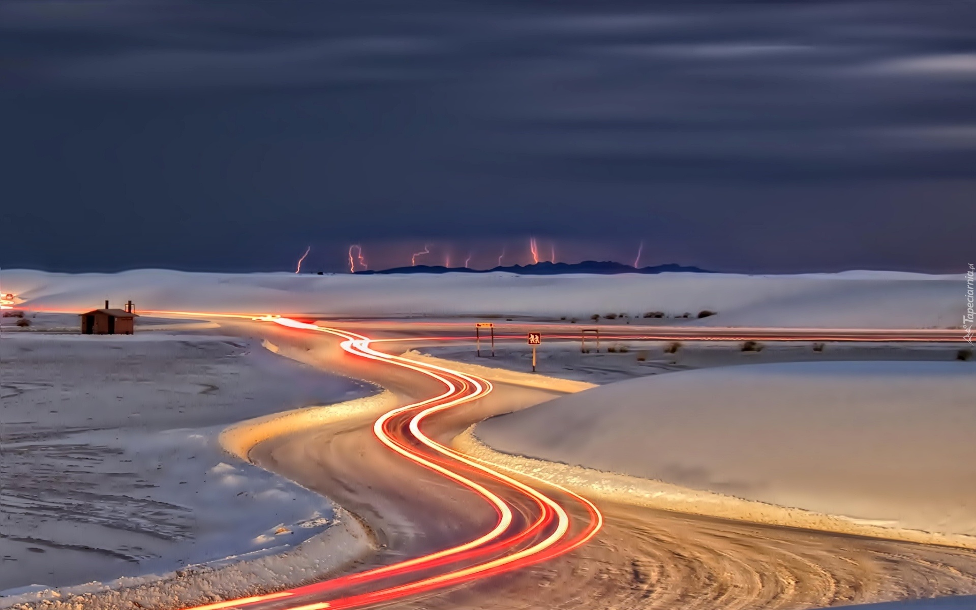 Edytor tapety: Zima, Śnieg, Kręta, Droga, Pioruny