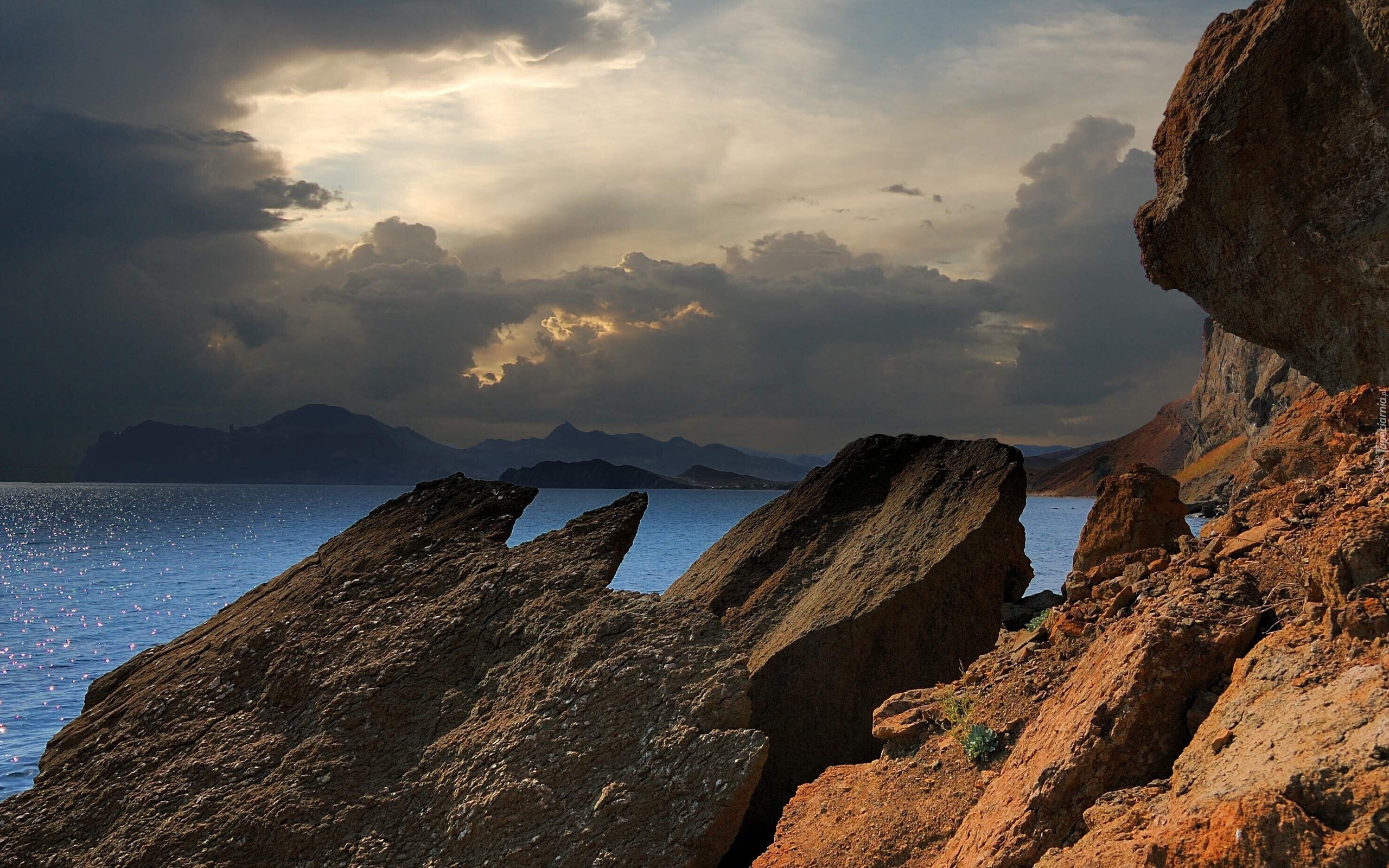 Edytor tapety: Wybrzeże, Chmury, Skały