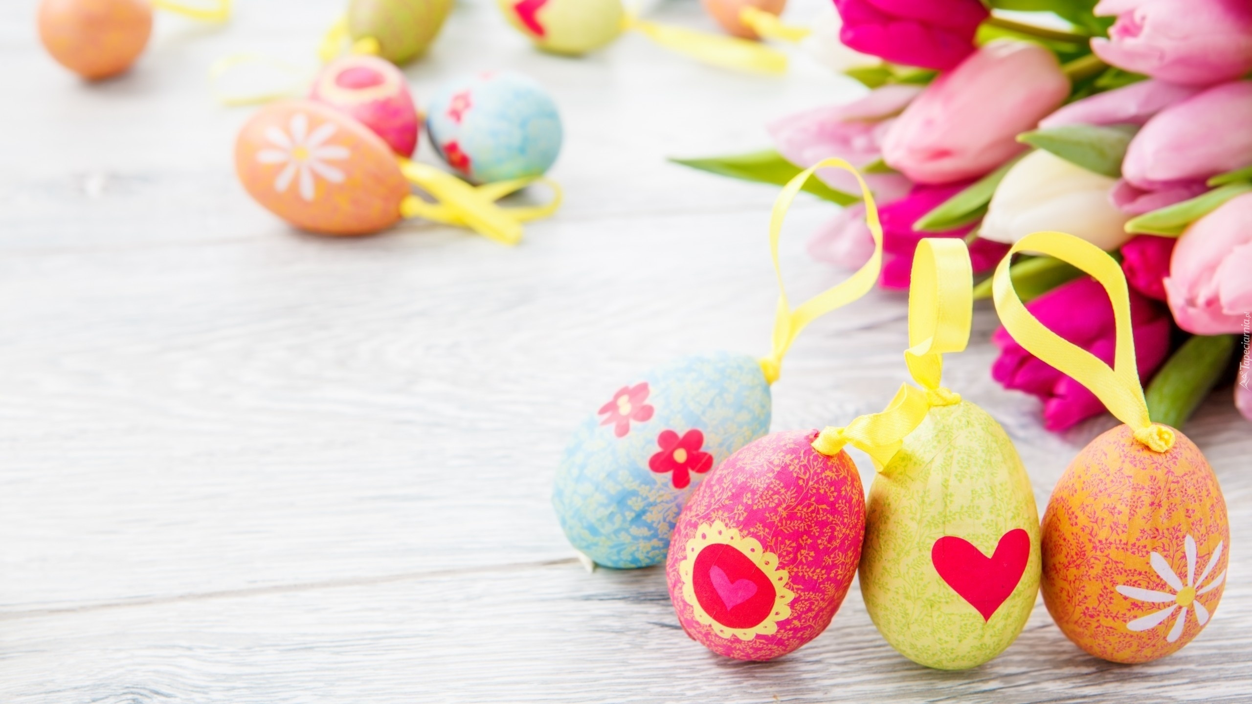 Edytor tapety: Wielkanoc, Jajka, Jajko, Pisanki, Tulipany, Kwiaty