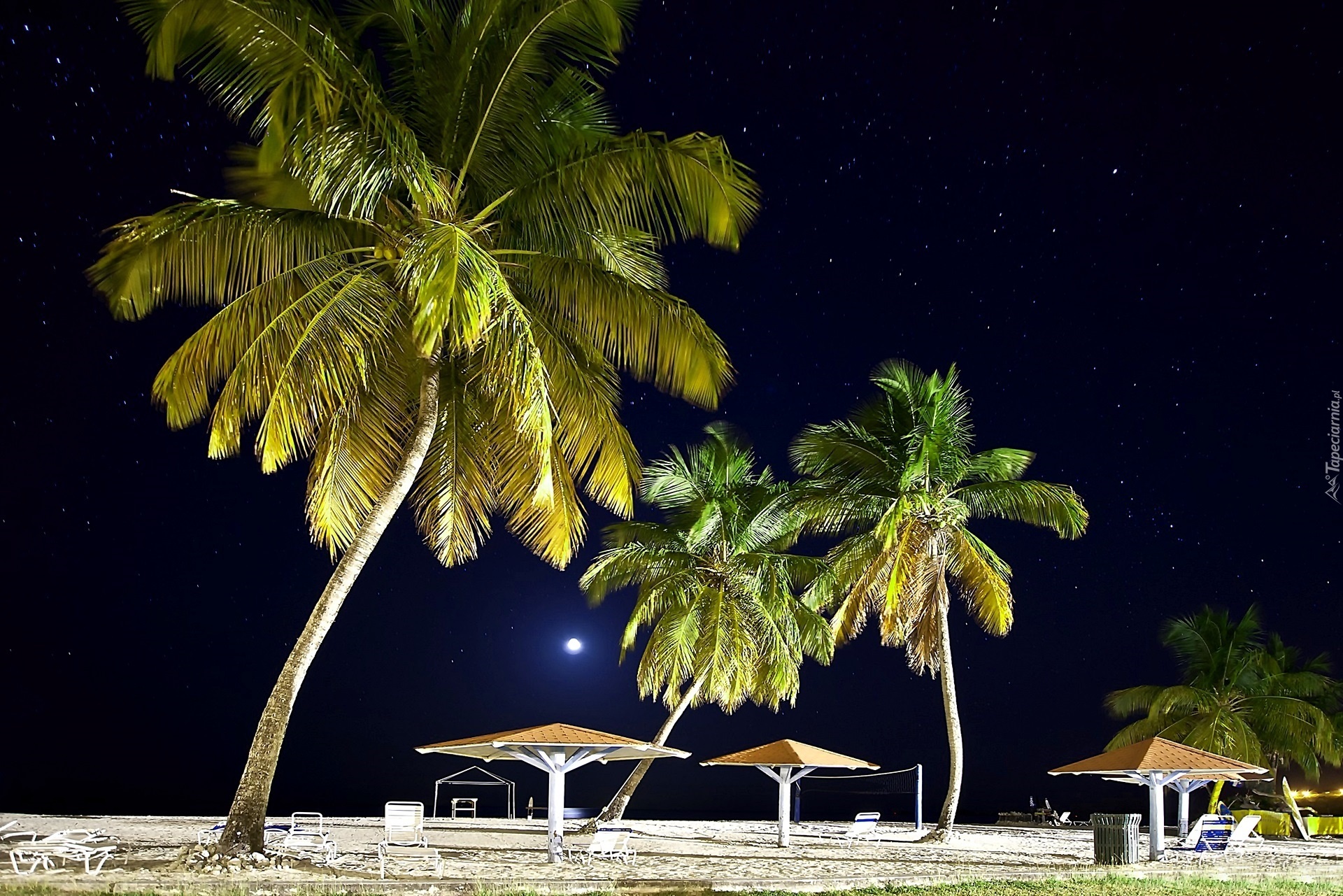 Edytor tapety: Plaża, Palmy, Noc, Tropiki