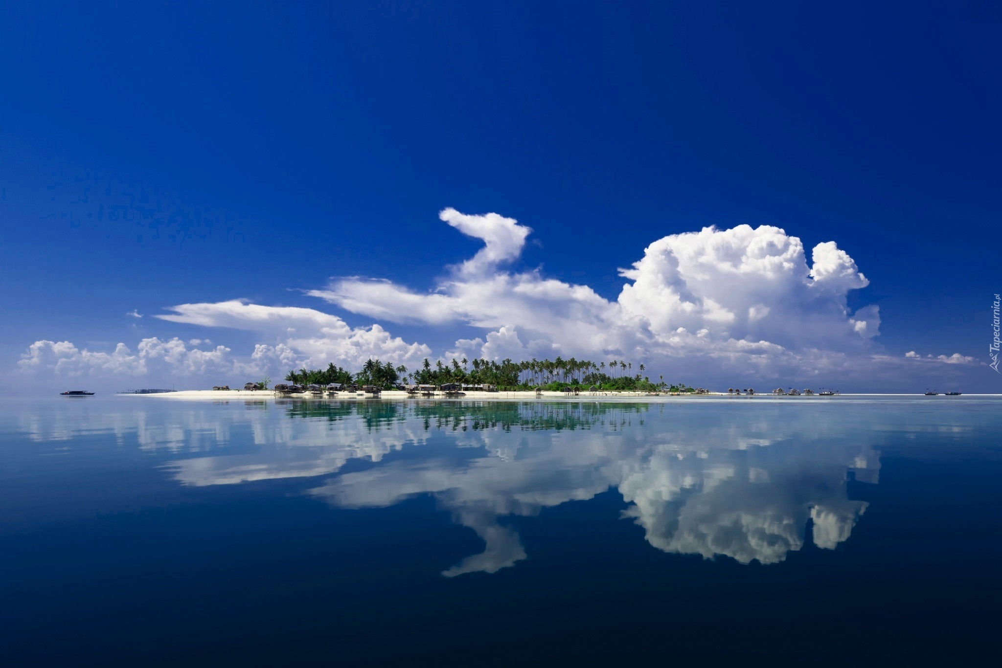 Edytor tapety: Ocean, Wyspa, Chmury, Odbicie