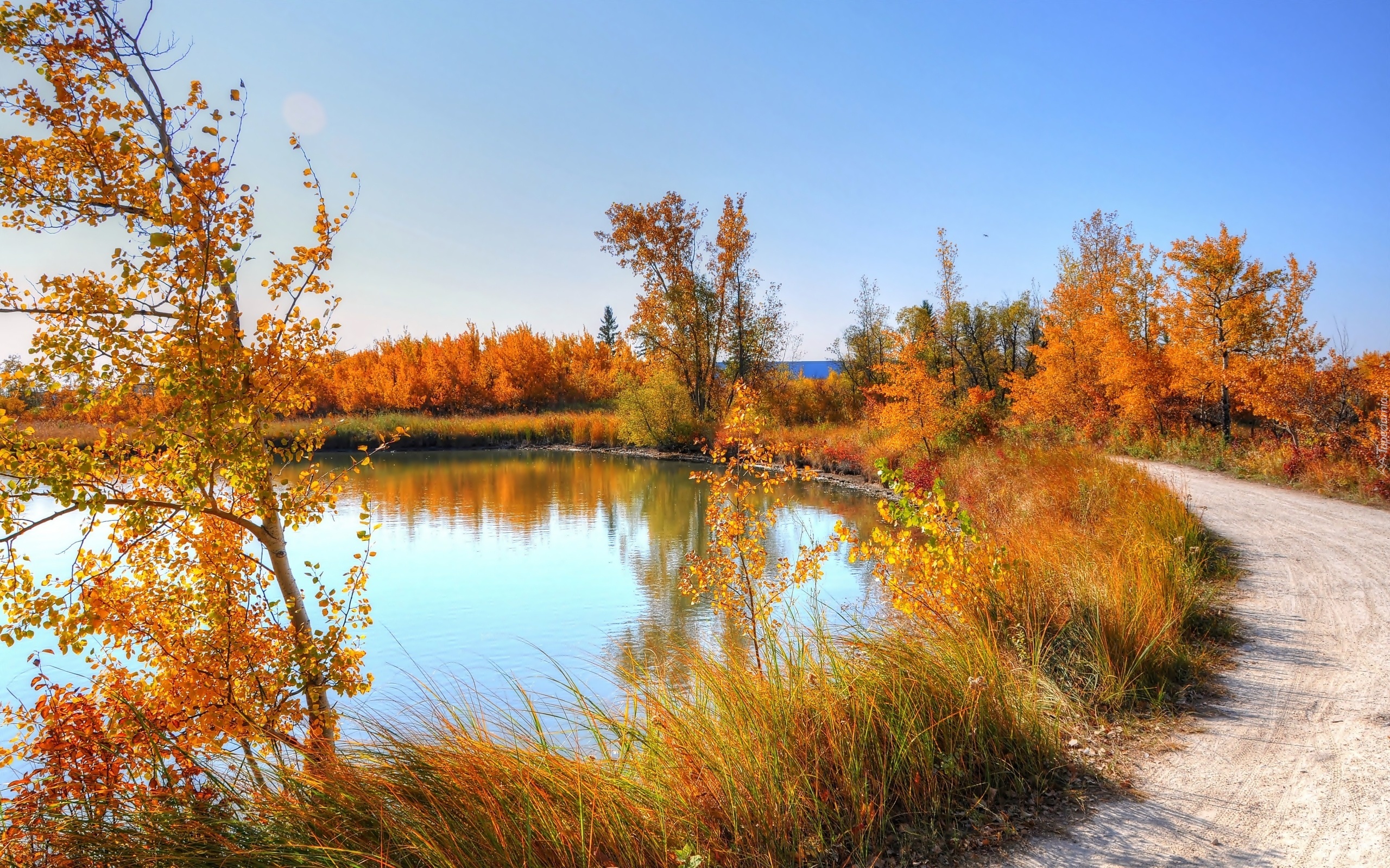 Edytor tapety: Jesień, Droga, Staw