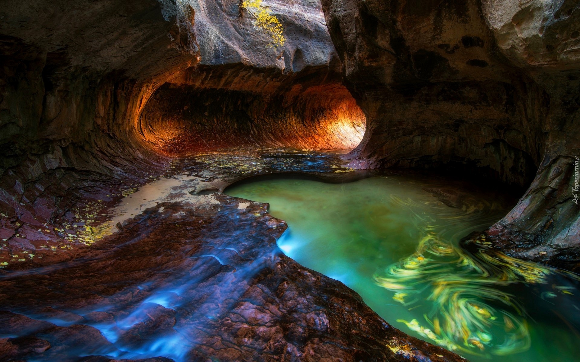Edytor tapety: Jaskinia, Przebijające Światło, Gra Kolorów
