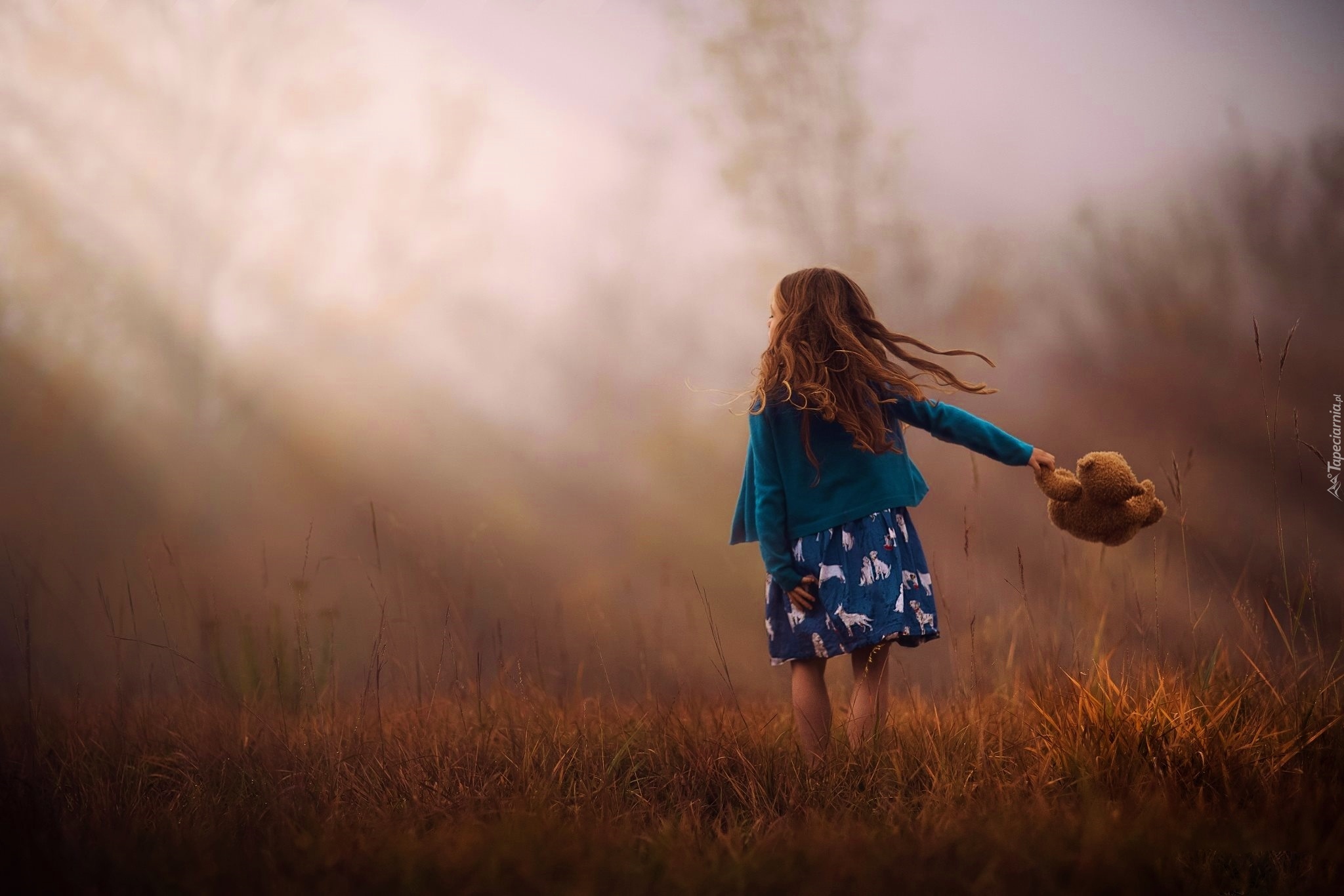 Edytor tapety: Dziewczynka, Miś, Trawa