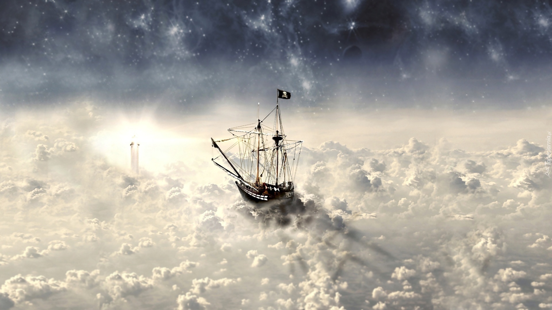 Edytor tapety: Fantasy, Statek, Chmury