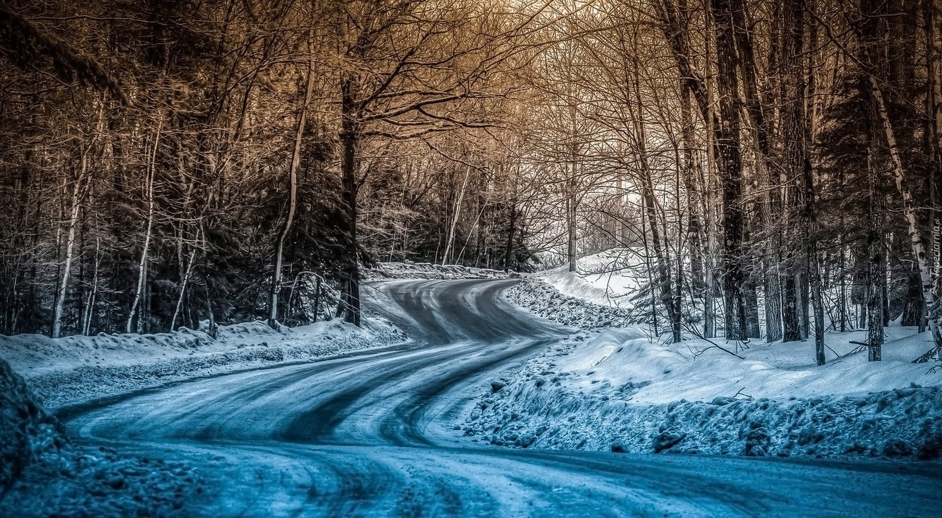 Edytor tapety: Zima, Las, Droga