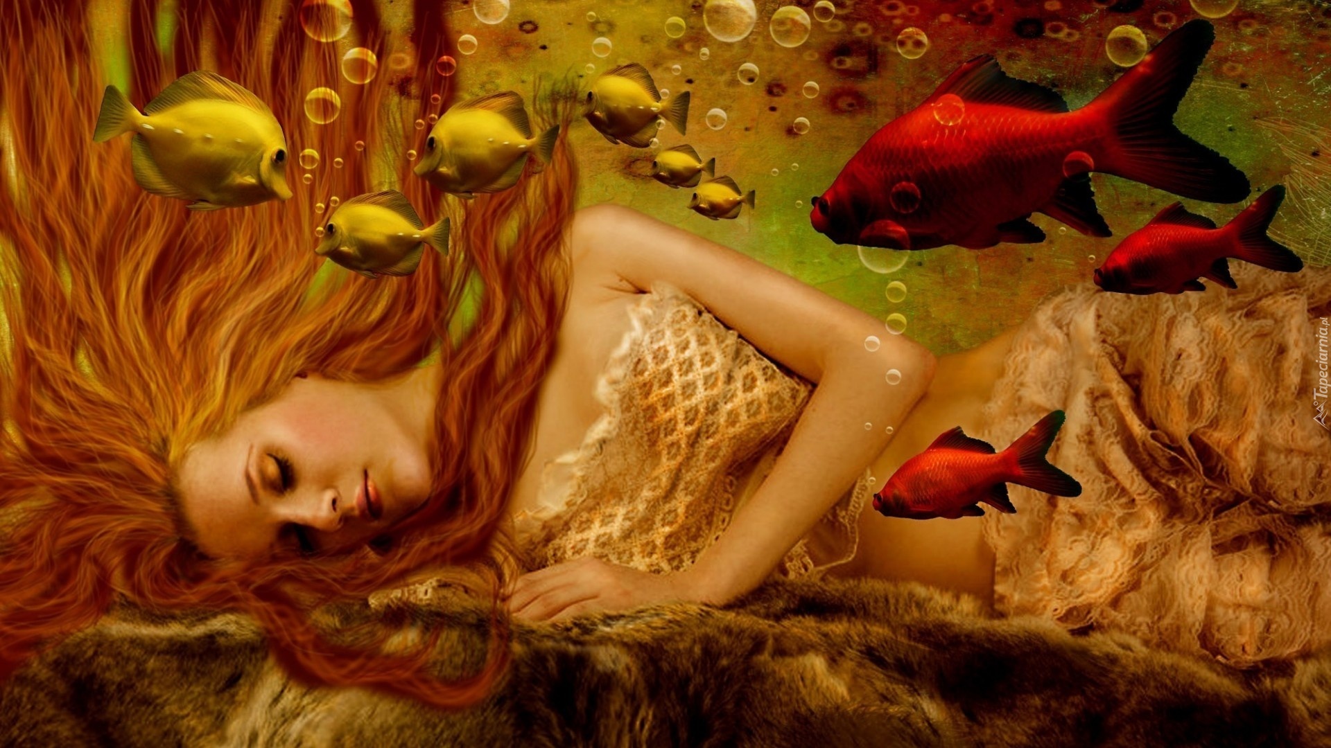 Edytor tapety: Fantasy, Kobieta, Ryby