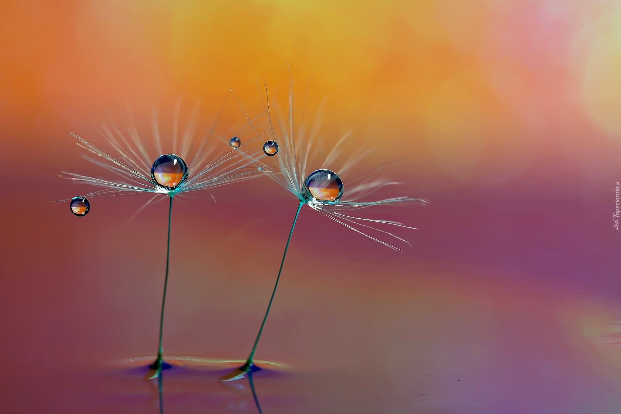 Edytor tapety: Dmuchawce, Krople, Wody, Makro