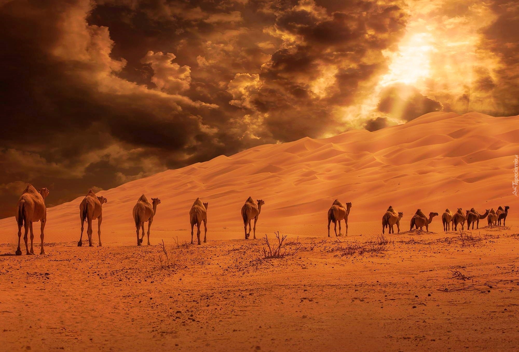 Edytor tapety: Karawana, Pustynia, Niebo, Chmury