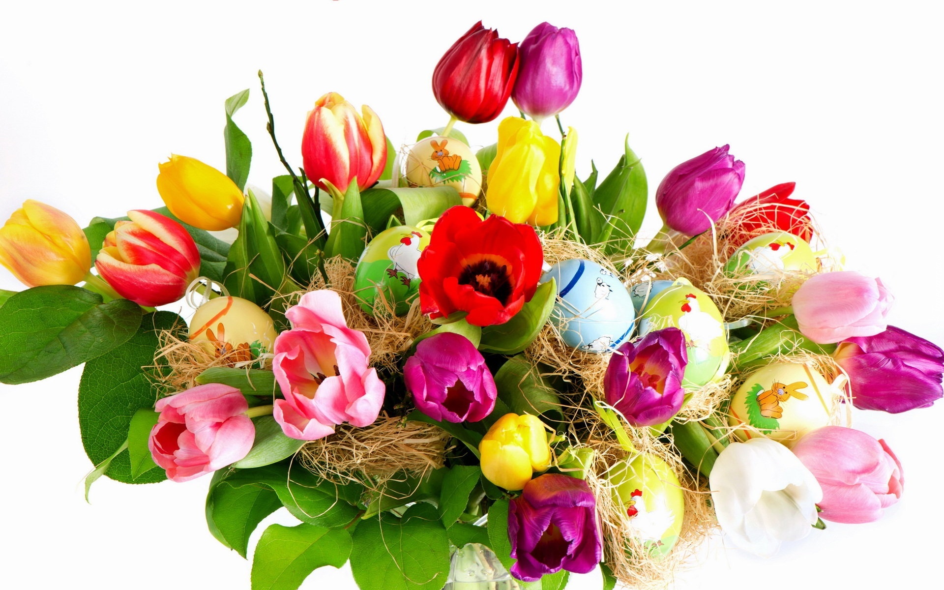Edytor tapety: Kolorowe, Tulipany, Pisanki, Wielkanoc