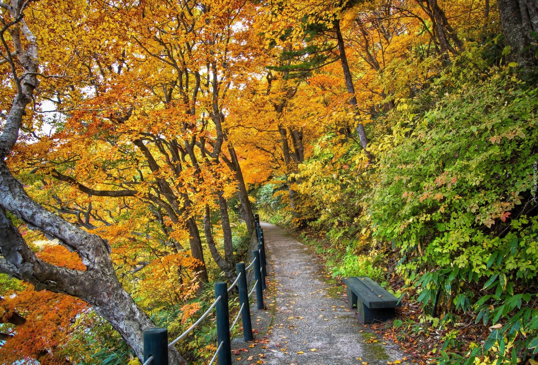 Edytor tapety: Jesień, Park, Ścieżka, Ławka
