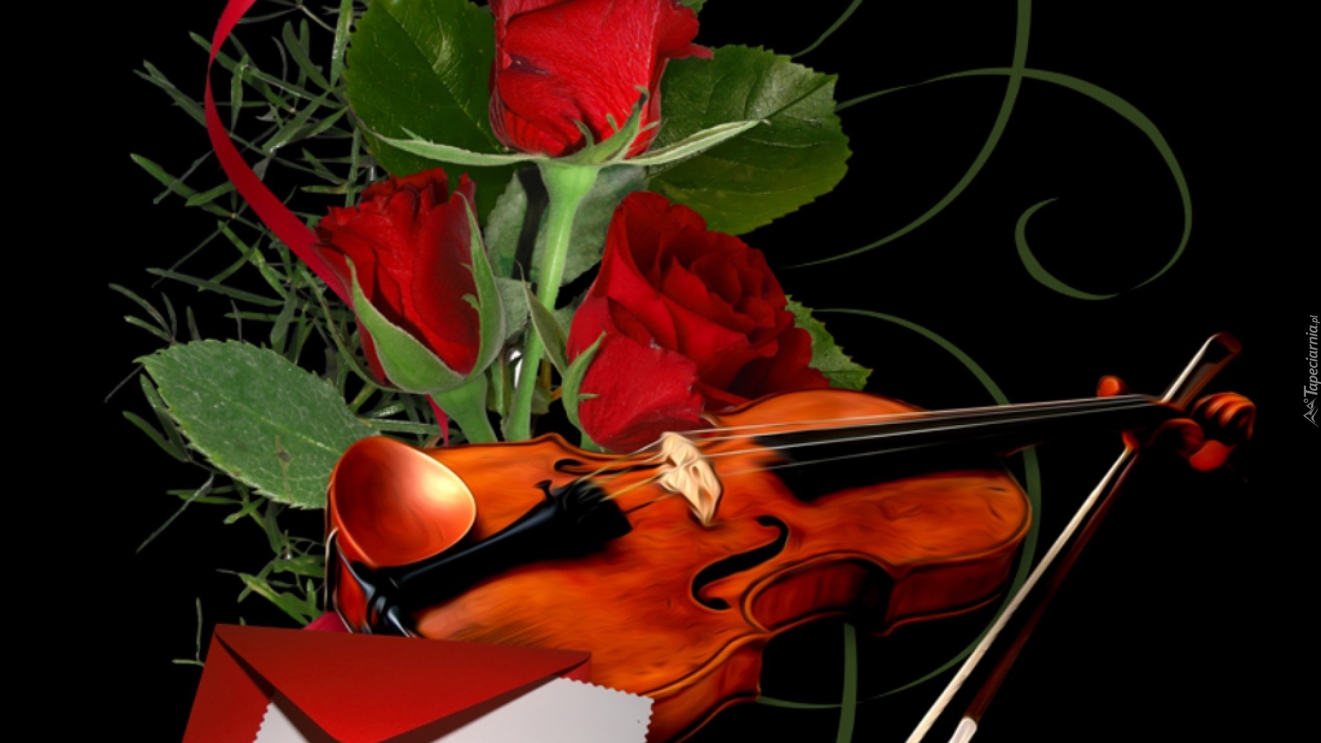Edytor tapety: Skrzypce, Róże, Koperta