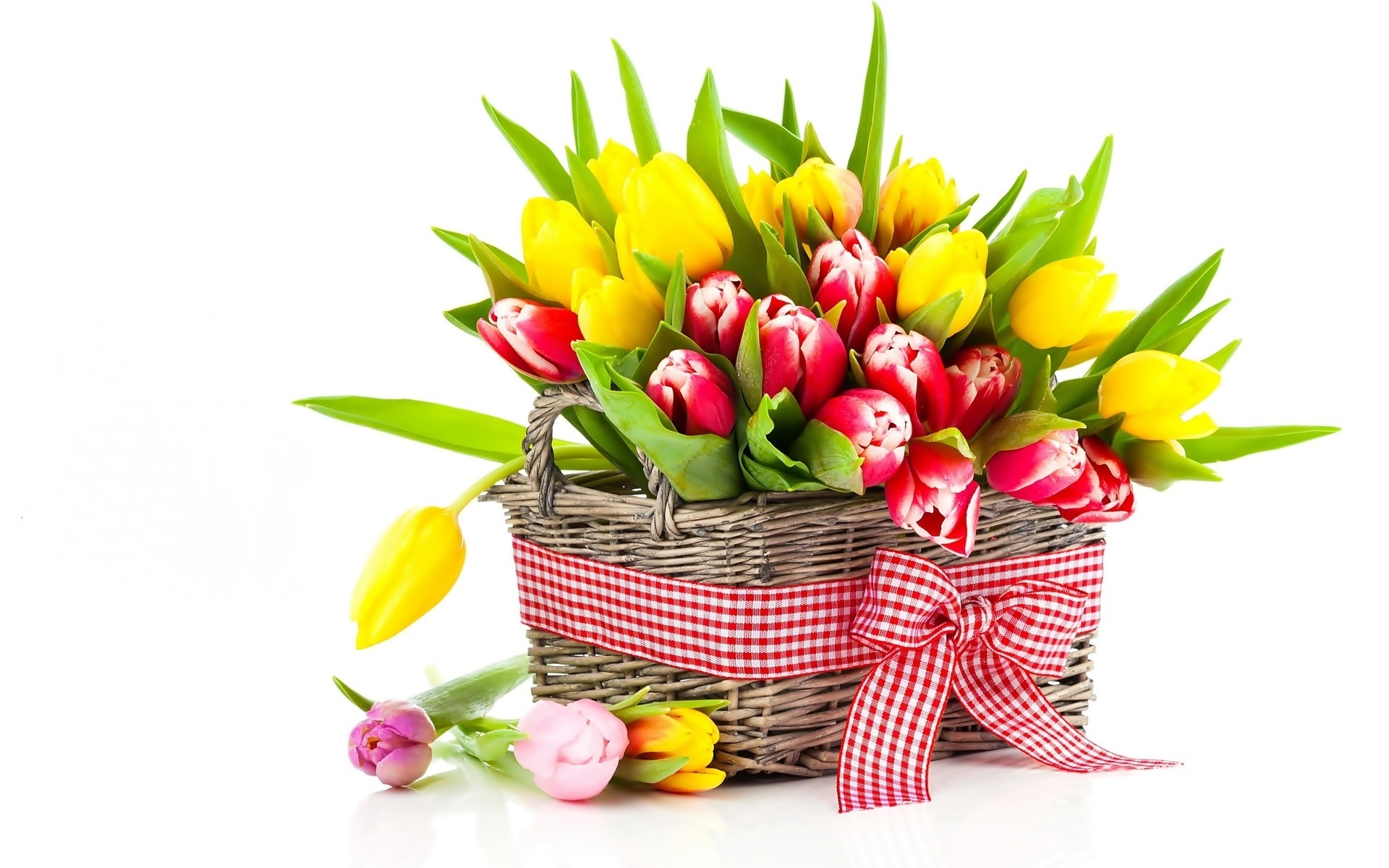 Edytor tapety: Bukiet, Kwiatów, Tulipany, Kosz