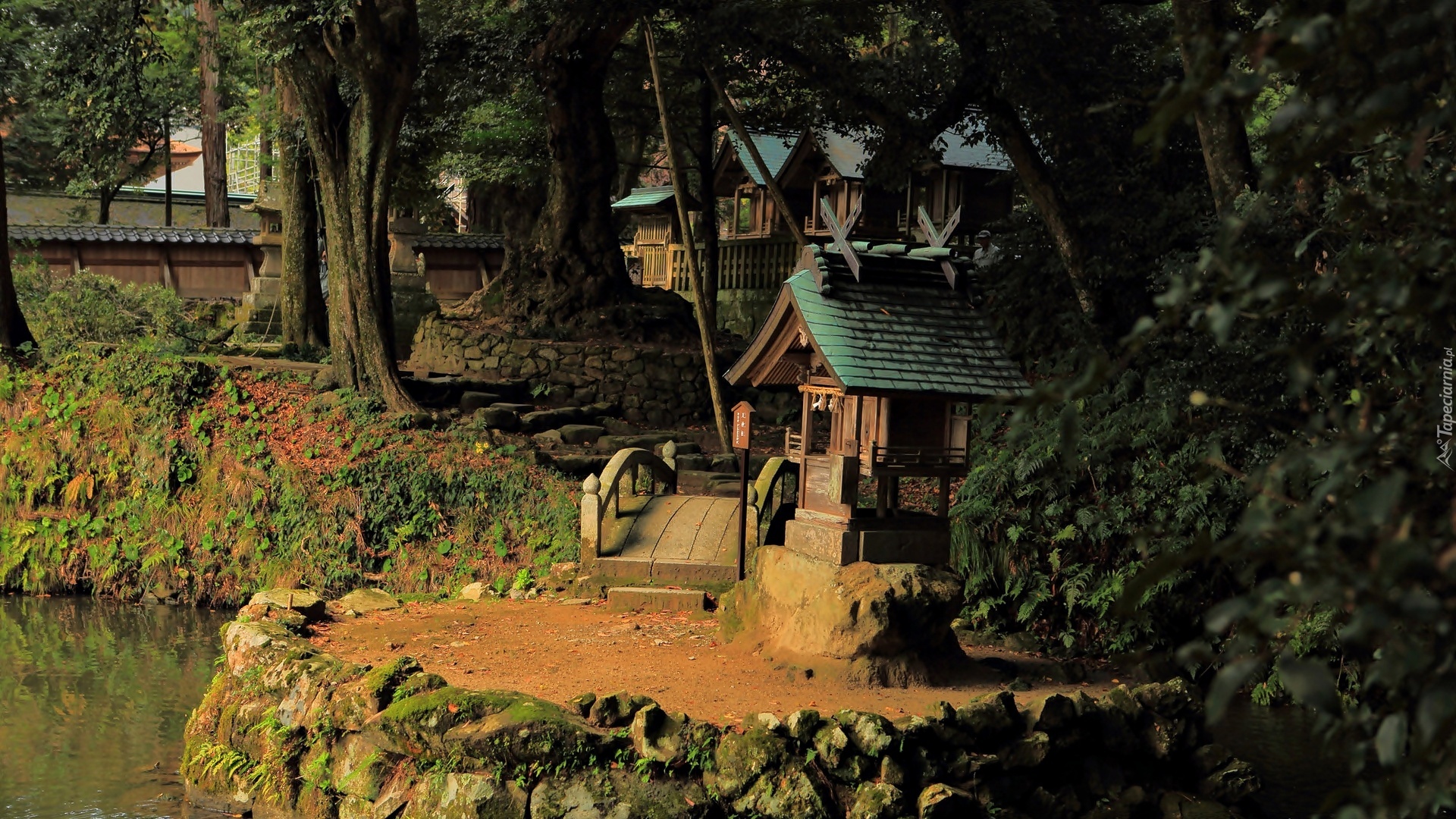Edytor tapety: Ogród, Park, Domek, Mostek