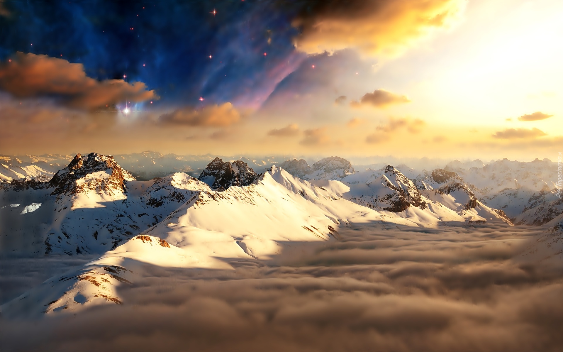 Edytor tapety: Zima, Wierzchołki, Gór, Chmury