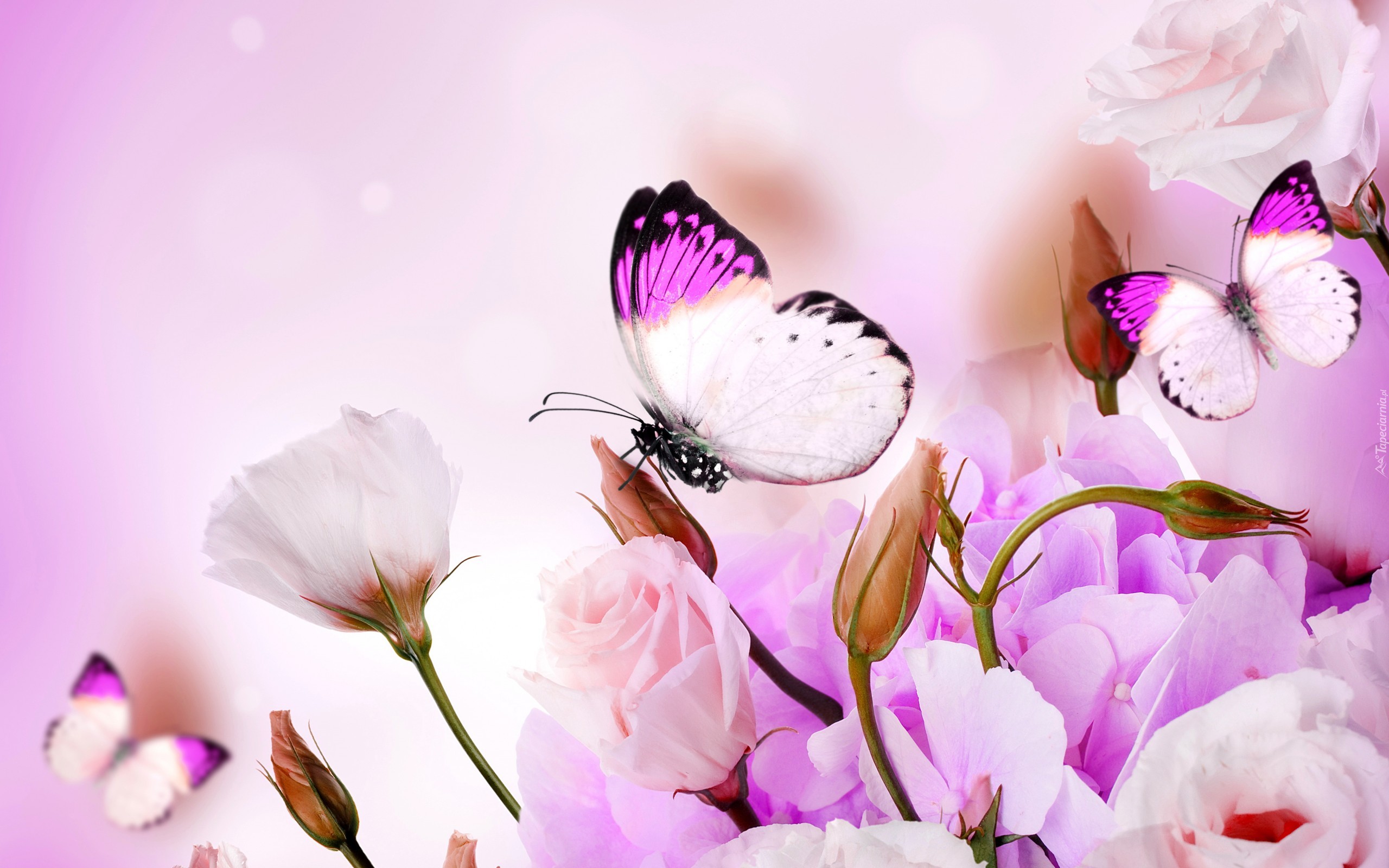 Edytor tapety: Kwiaty, Eustoma, Motyle