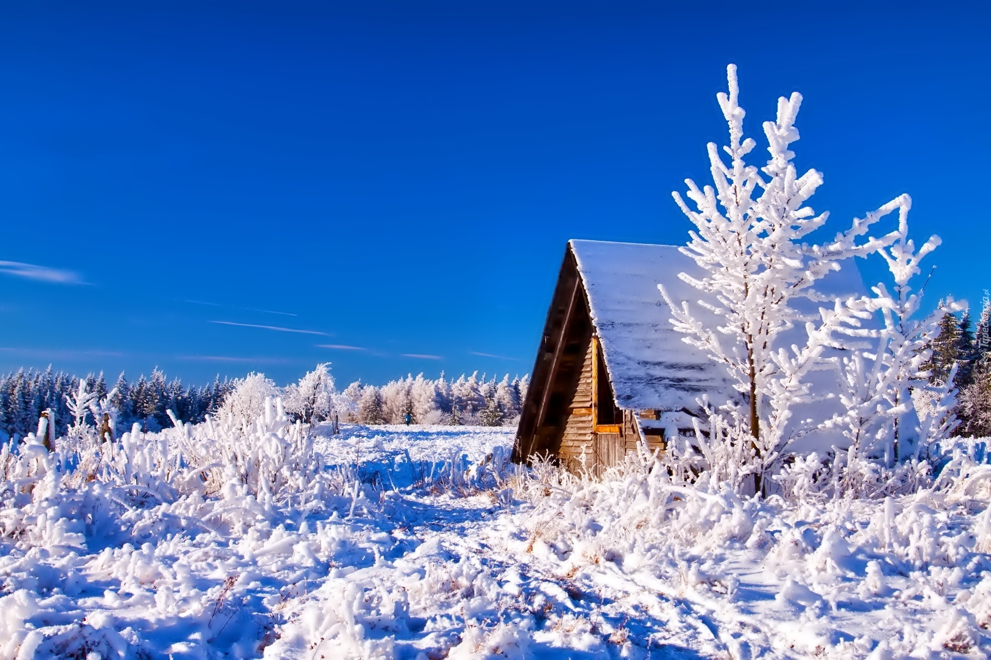 Edytor tapety: Domek, Zima, Las