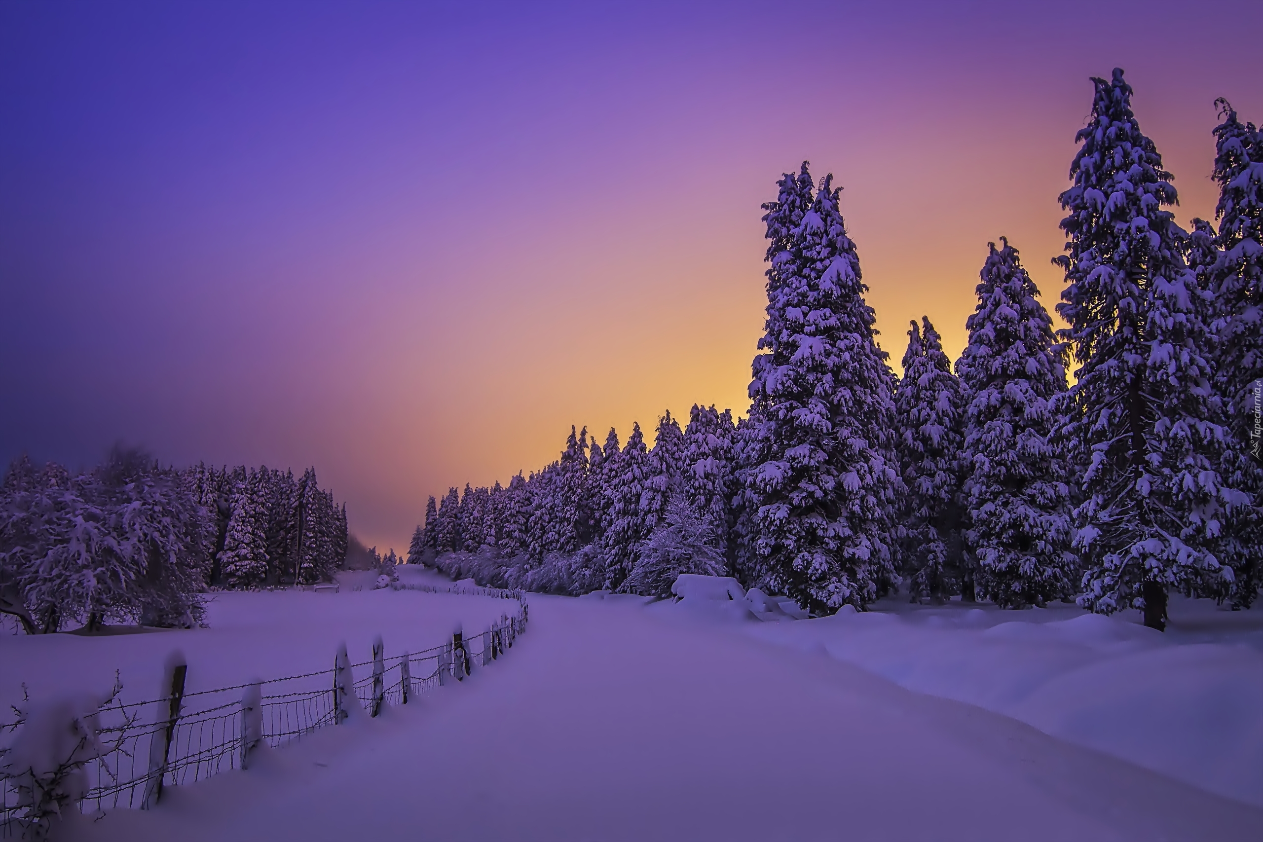 Edytor tapety: Zima, Śnieg, Noc, Las, Świerki