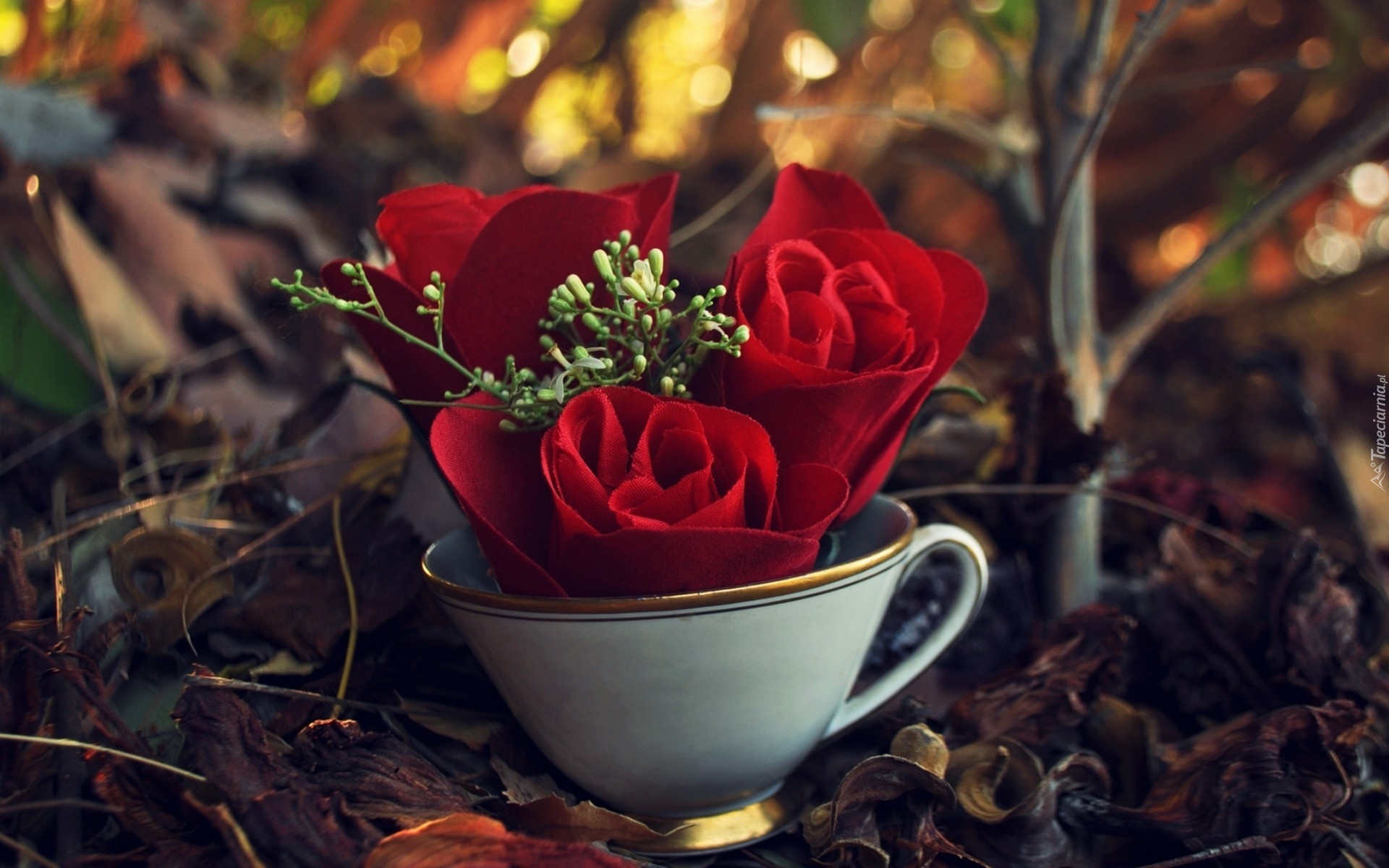 Edytor tapety: Róża, Czerwona, Filiżanka, Runo