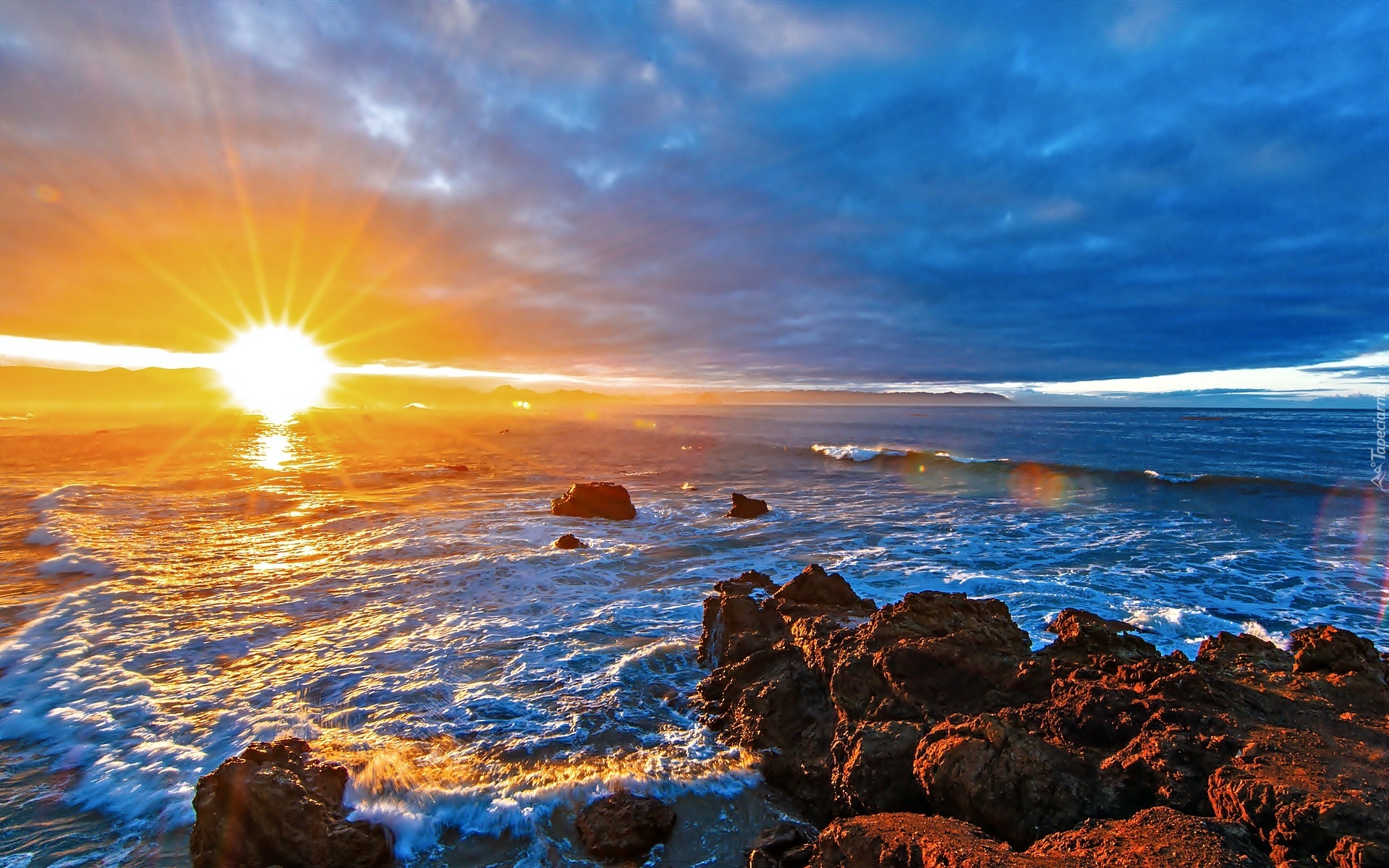 Edytor tapety: Zachód Słońca, Morze, Skały
