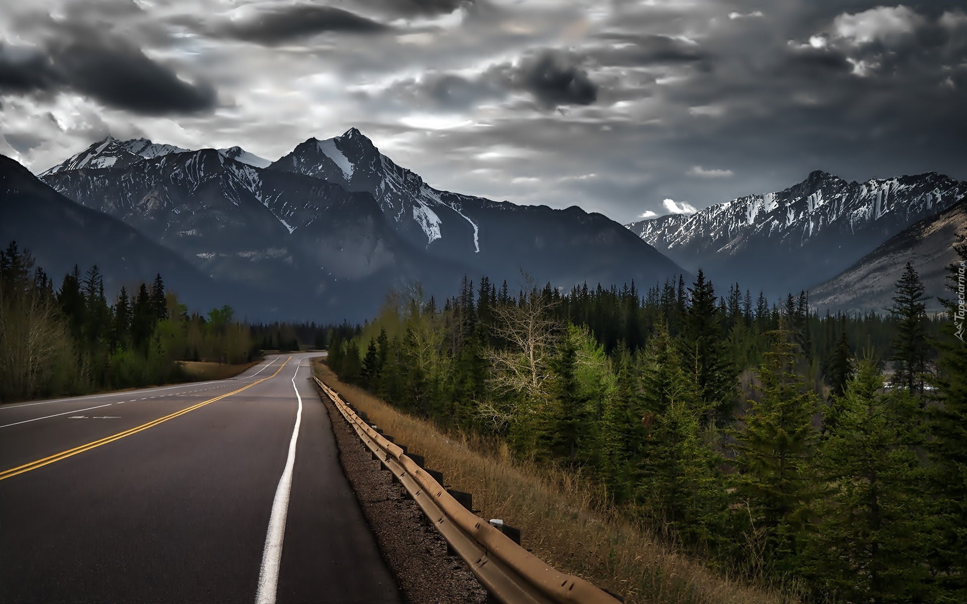 Edytor tapety: Droga, Góry, Las