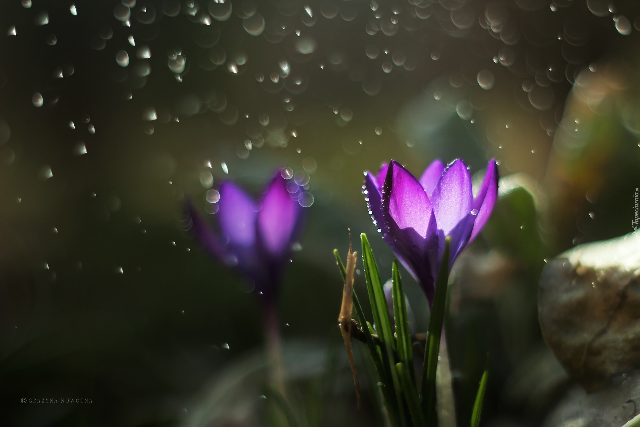 Edytor tapety: Krokus, Fioletowy, Kwiat, Krople