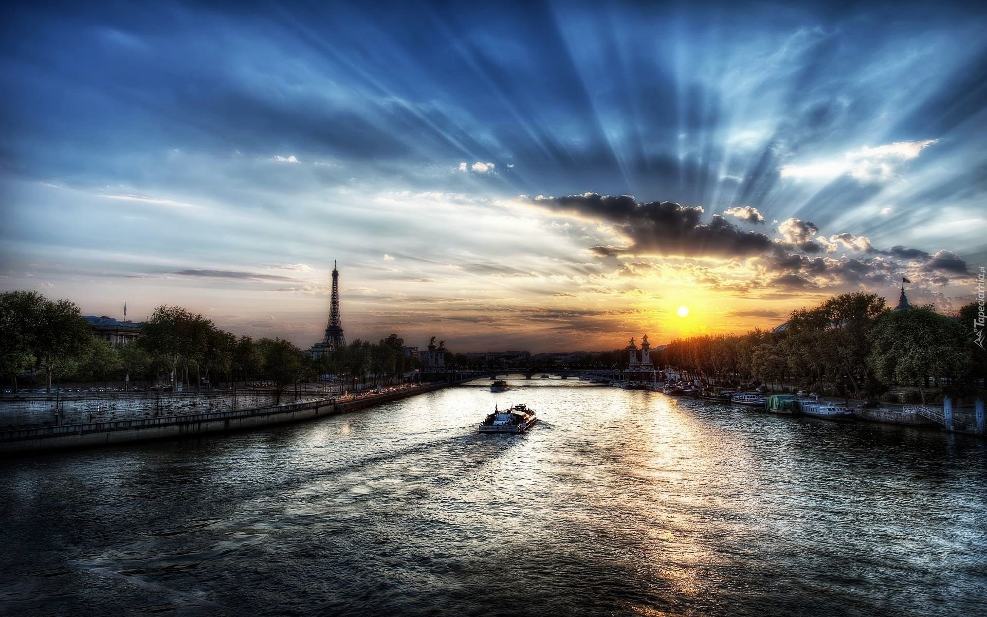 Edytor tapety: Chmury, Rzeka, Francja, Paryż, Wieża Eiffla, Zachód słońca