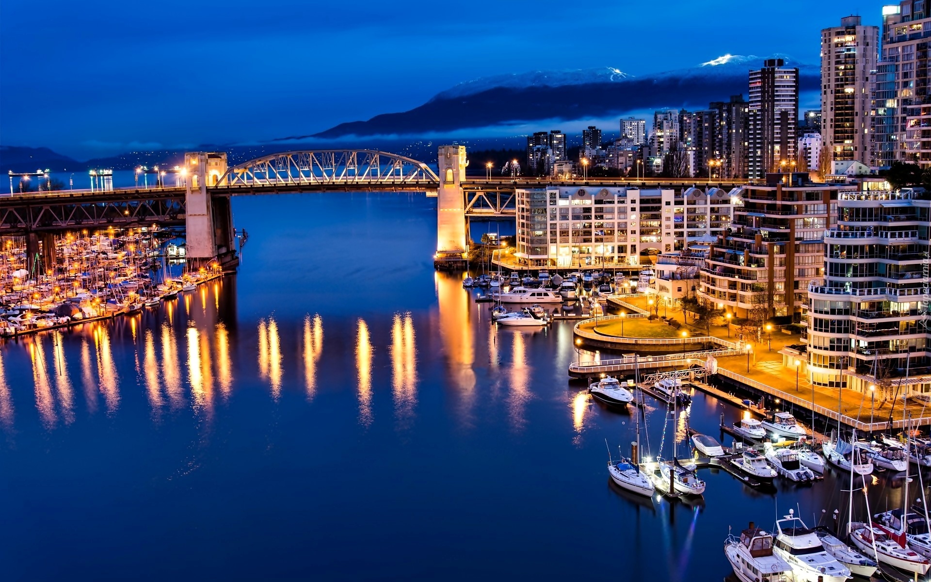 Edytor tapety: Kanada, Vancouver, Miasto, Nocą, Most
