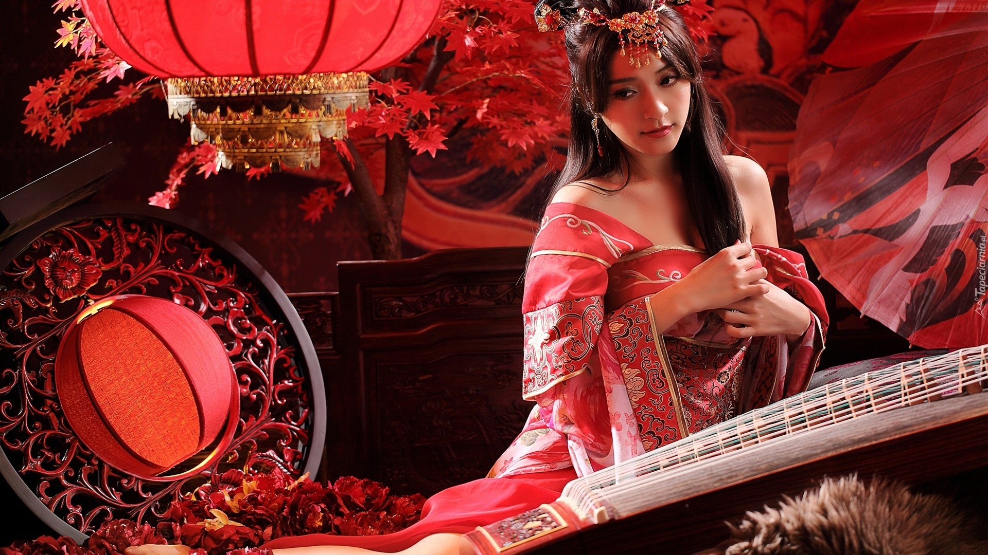 Edytor tapety: Brunetka, Orientalnie, Instrument