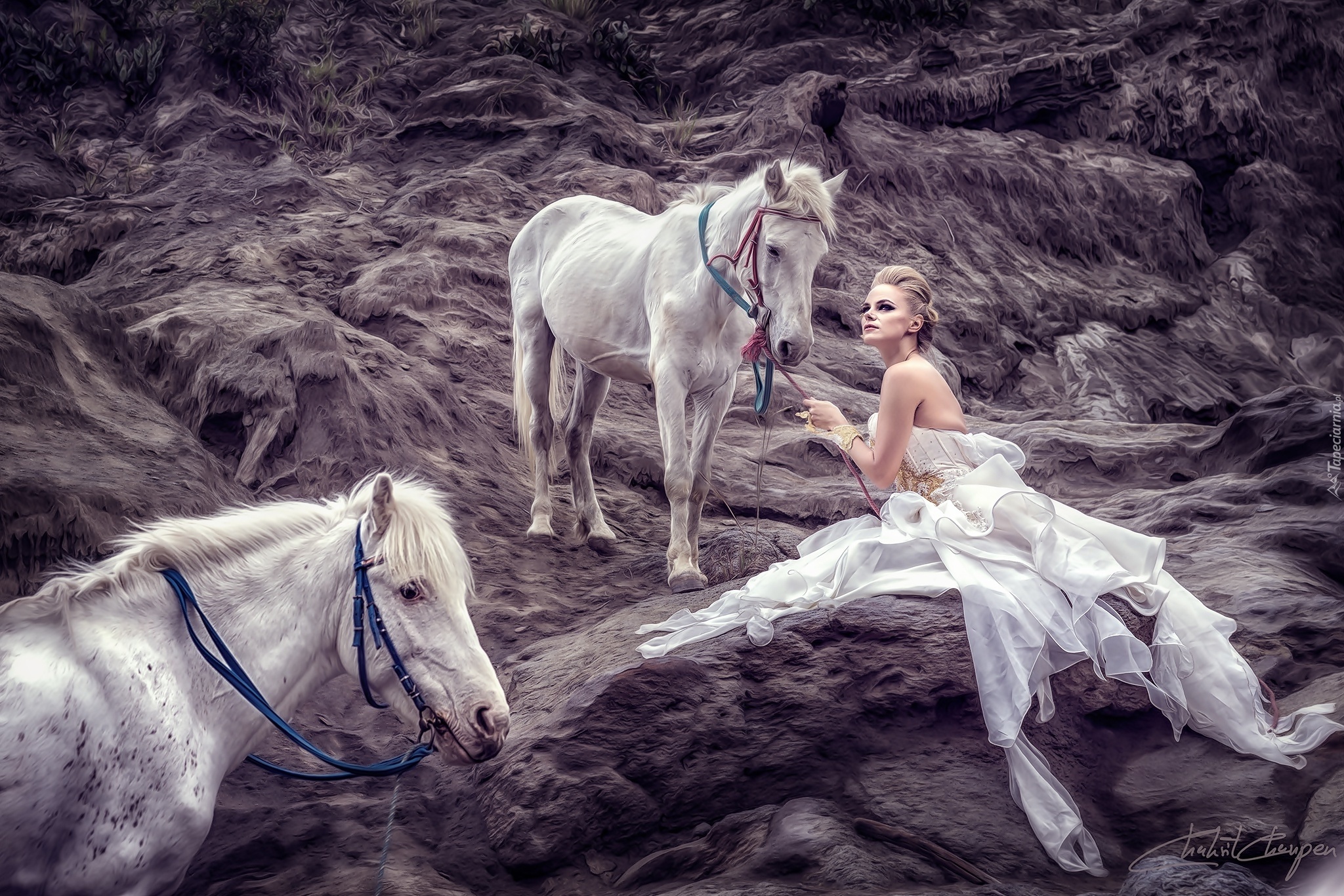 Edytor tapety: Białe, Konie, Dziewczyna