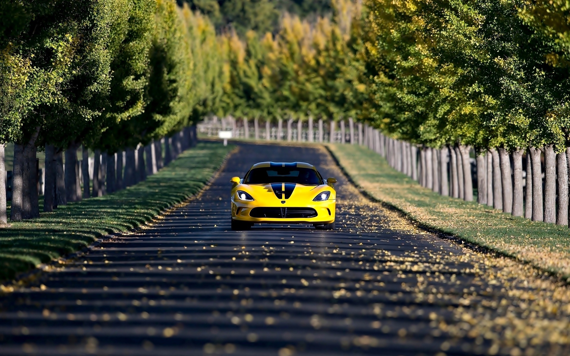 Edytor tapety: Samochód, Dodge, Viper, Drzewa, Droga, Płot