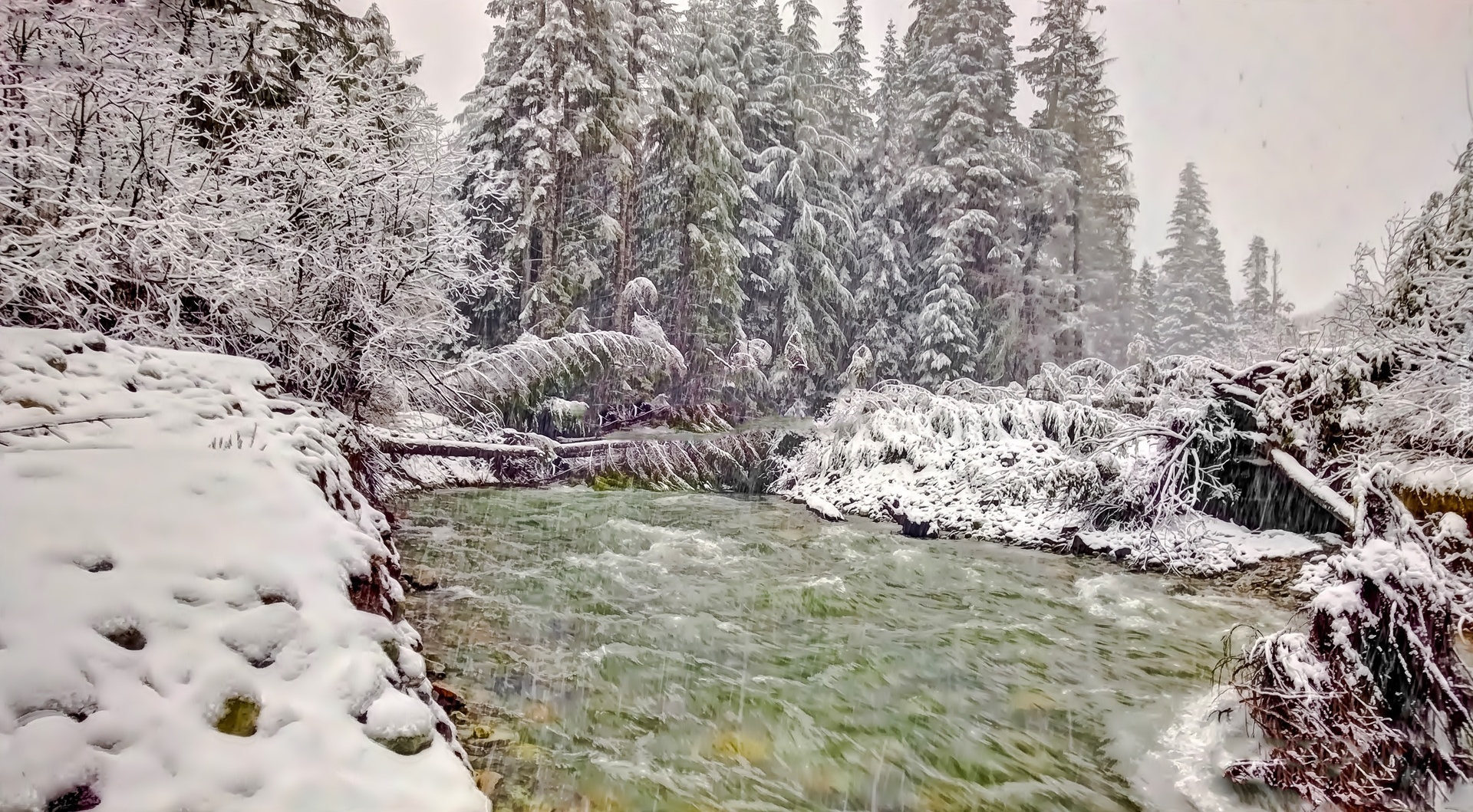 Edytor tapety: Zima, Rzeka, Ośnieżone, Drzewa