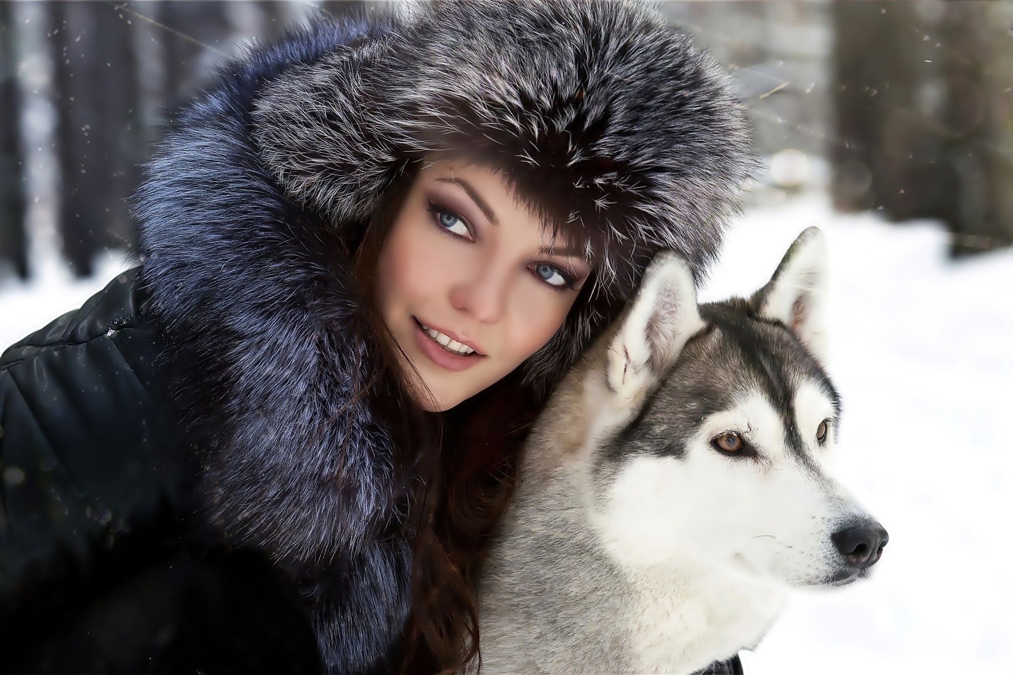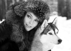 Edytor tapety: Kobieta, Czapka, Pies, Siberian Husky