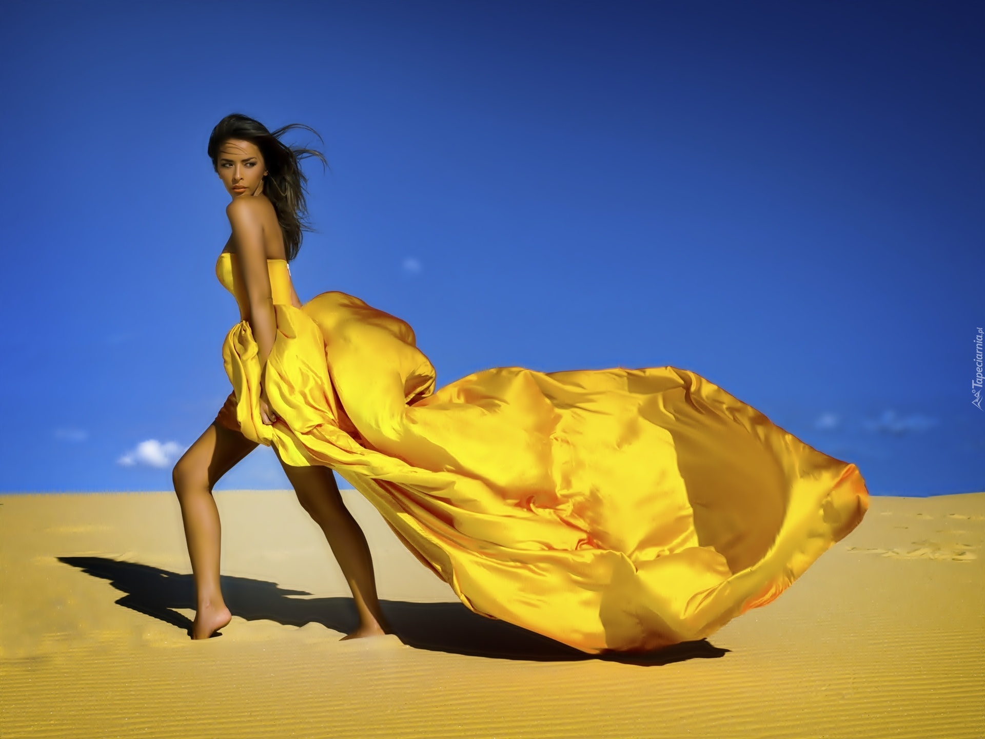Edytor tapety: Kobieta, Piasek, Suknia