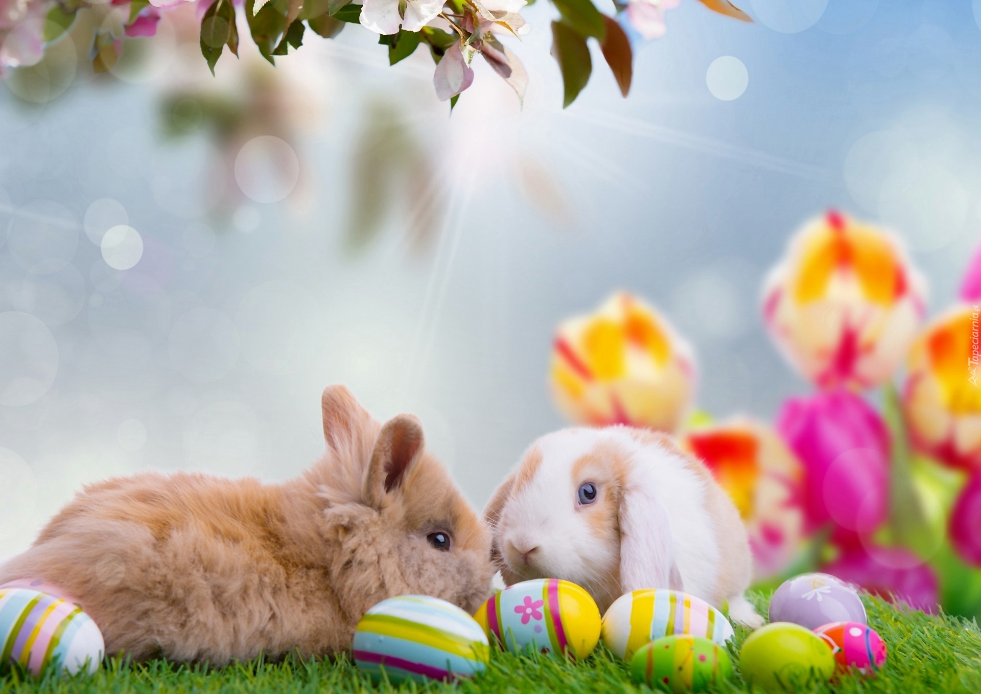 Edytor tapety: Wielkanoc, Króliczki, Kolorowe, Pisanki, Wiosna